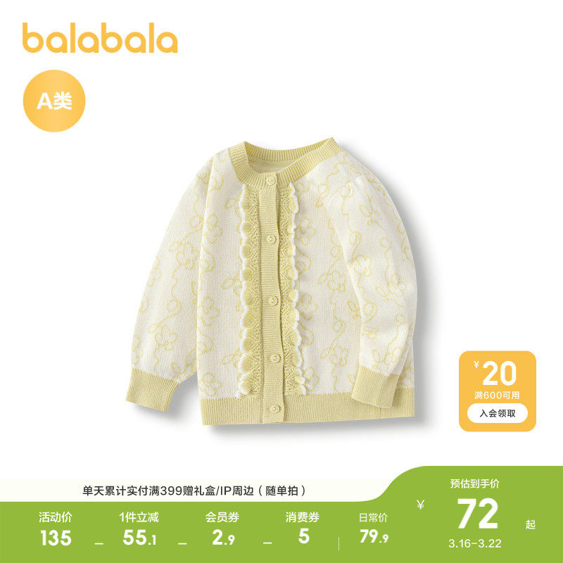 巴拉巴拉宝宝毛衣婴儿针织衫薄开衫女童春装木耳边甜美精致时髦萌