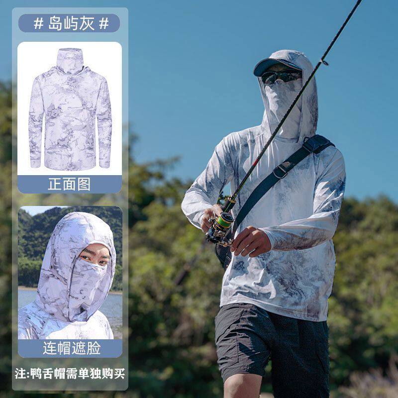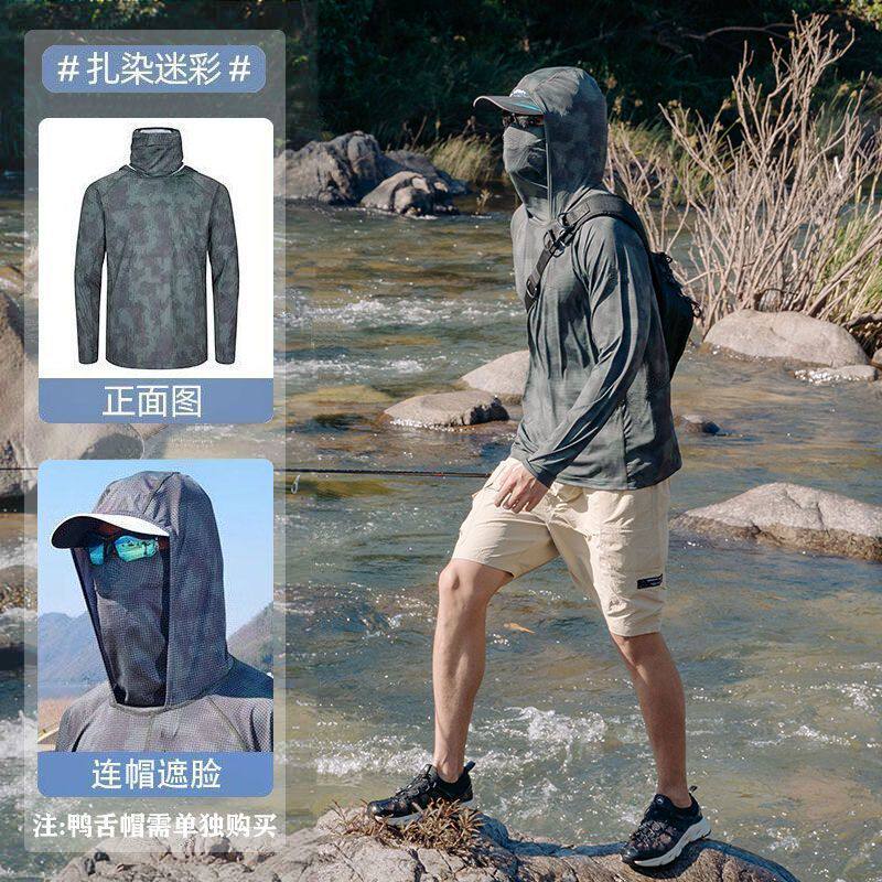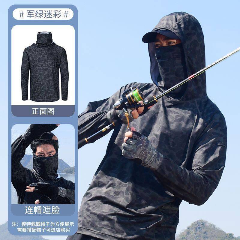 钓鱼专用防晒衣迷彩钓鱼防晒服男冰丝夏季超薄遮面户外垂钓路亚防