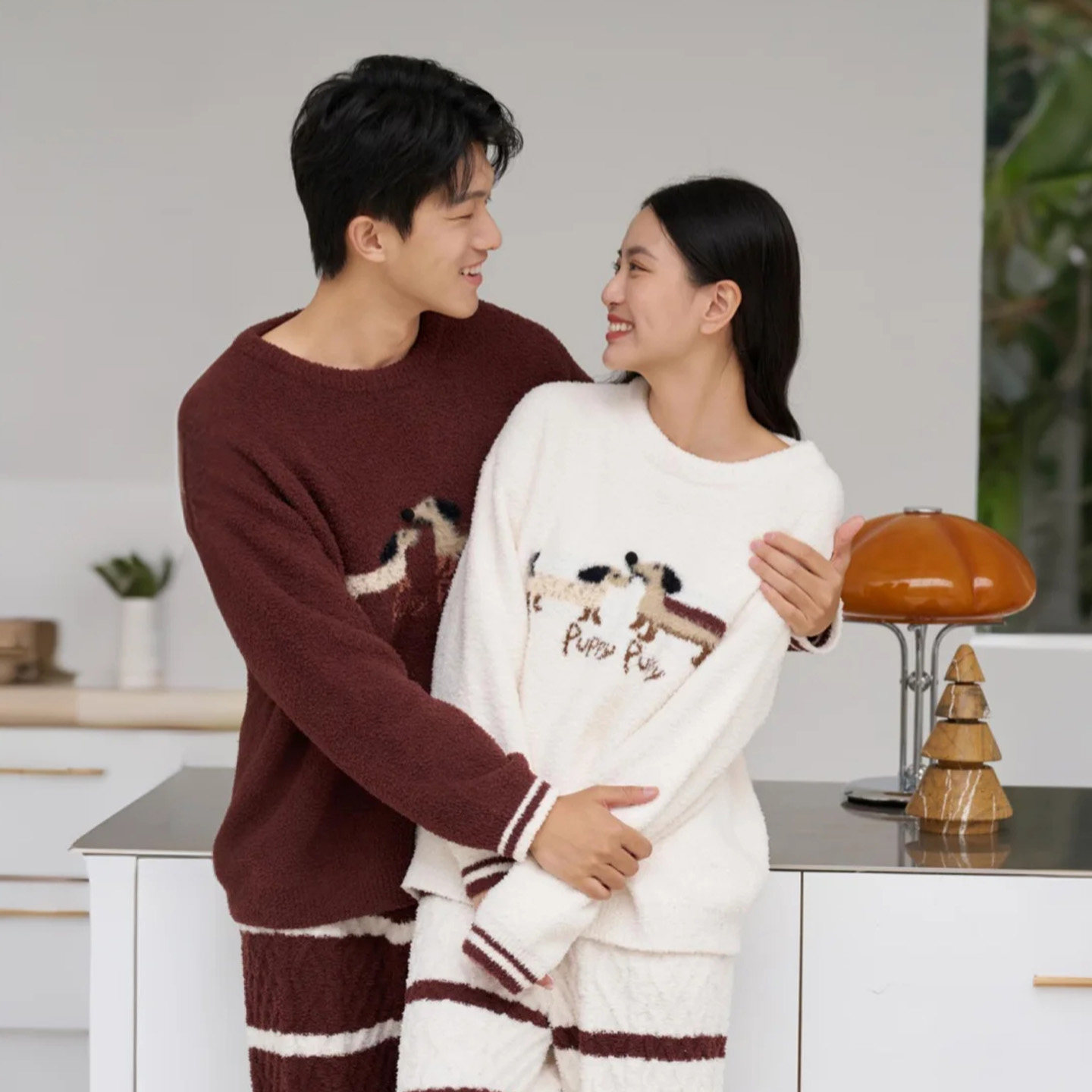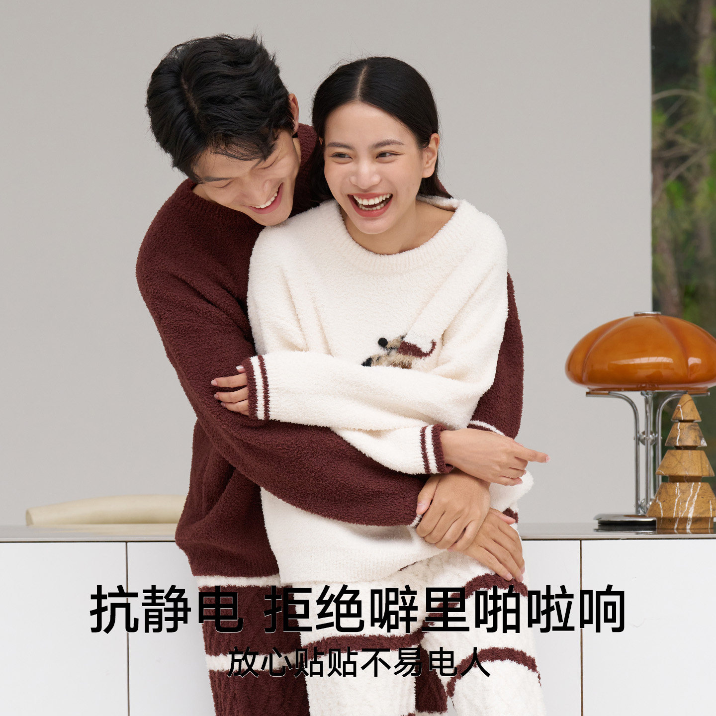 松山棉店半边绒家居服套装抗静电宽松柔软透气睡衣情侣秋