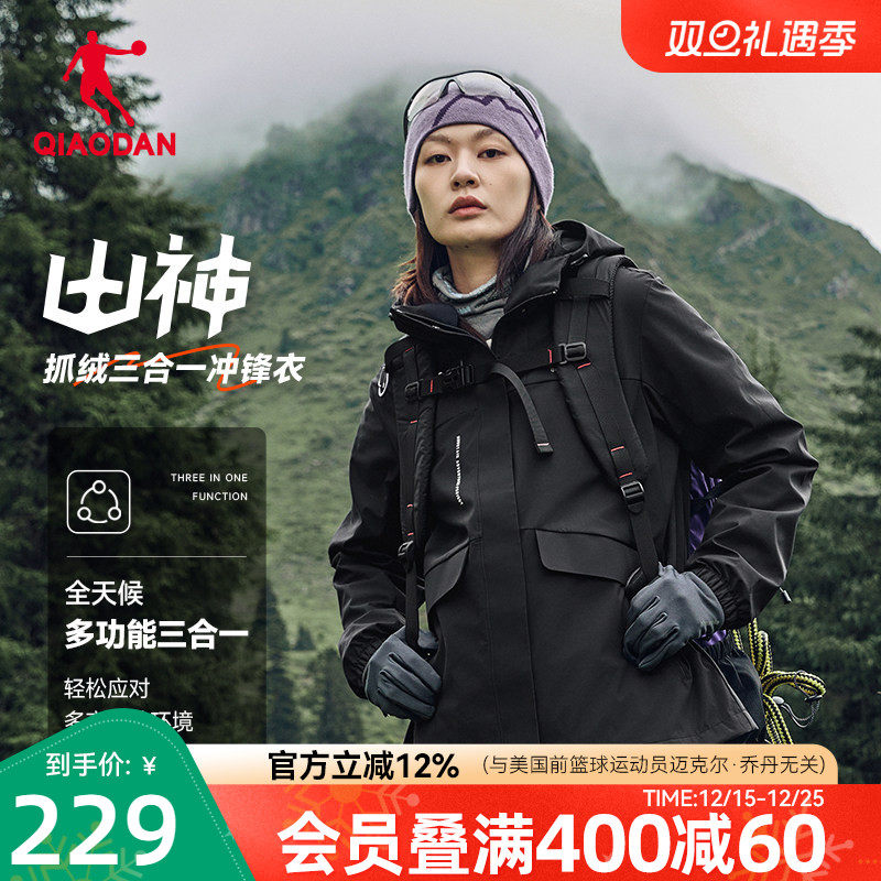 乔丹三合一风衣女2025冬季新款冲锋户外梭织防风女生户外登山运动
