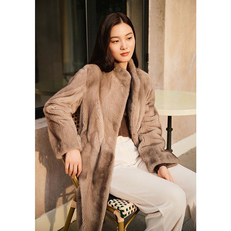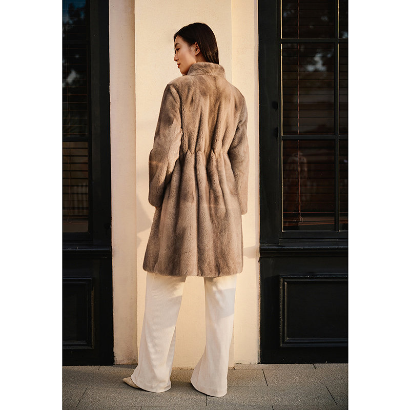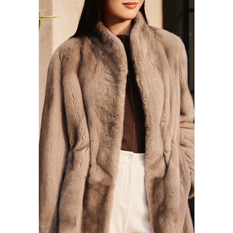 【新中式】YINER音儿专选2025春季新款立领水貂毛皮长款真皮皮草