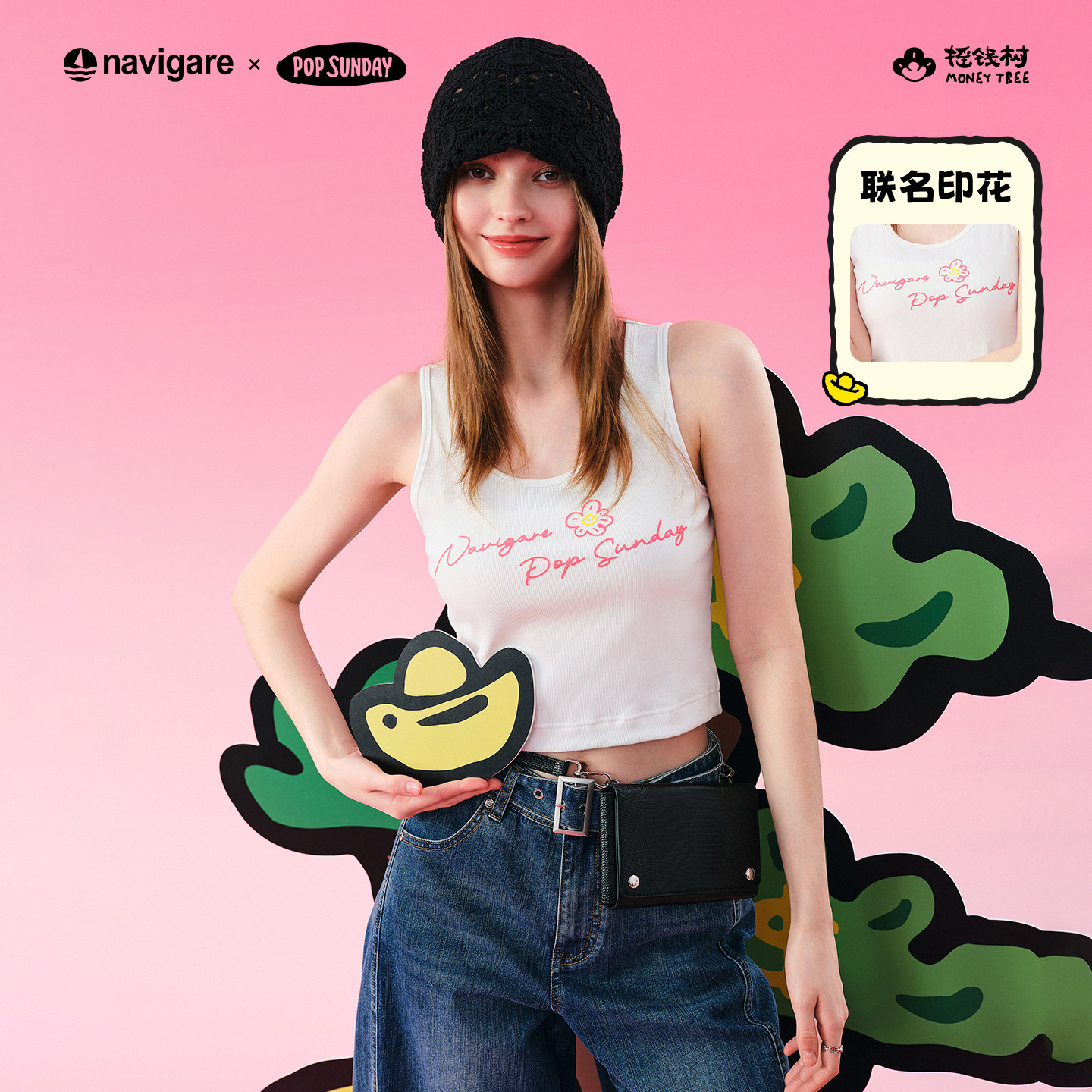 [POPSUNDAY摇钱树联名]Navigare小帆船白色百搭背心女无袖上衣