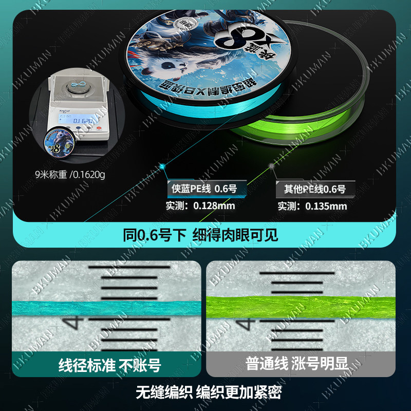 BKUMAN侠蓝升级8编PE线蓝色路亚专用微物主线强劲超顺滑远投pe线