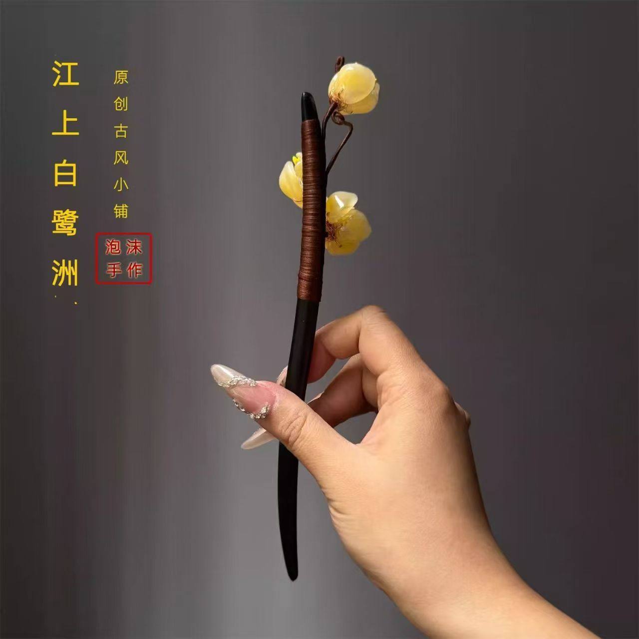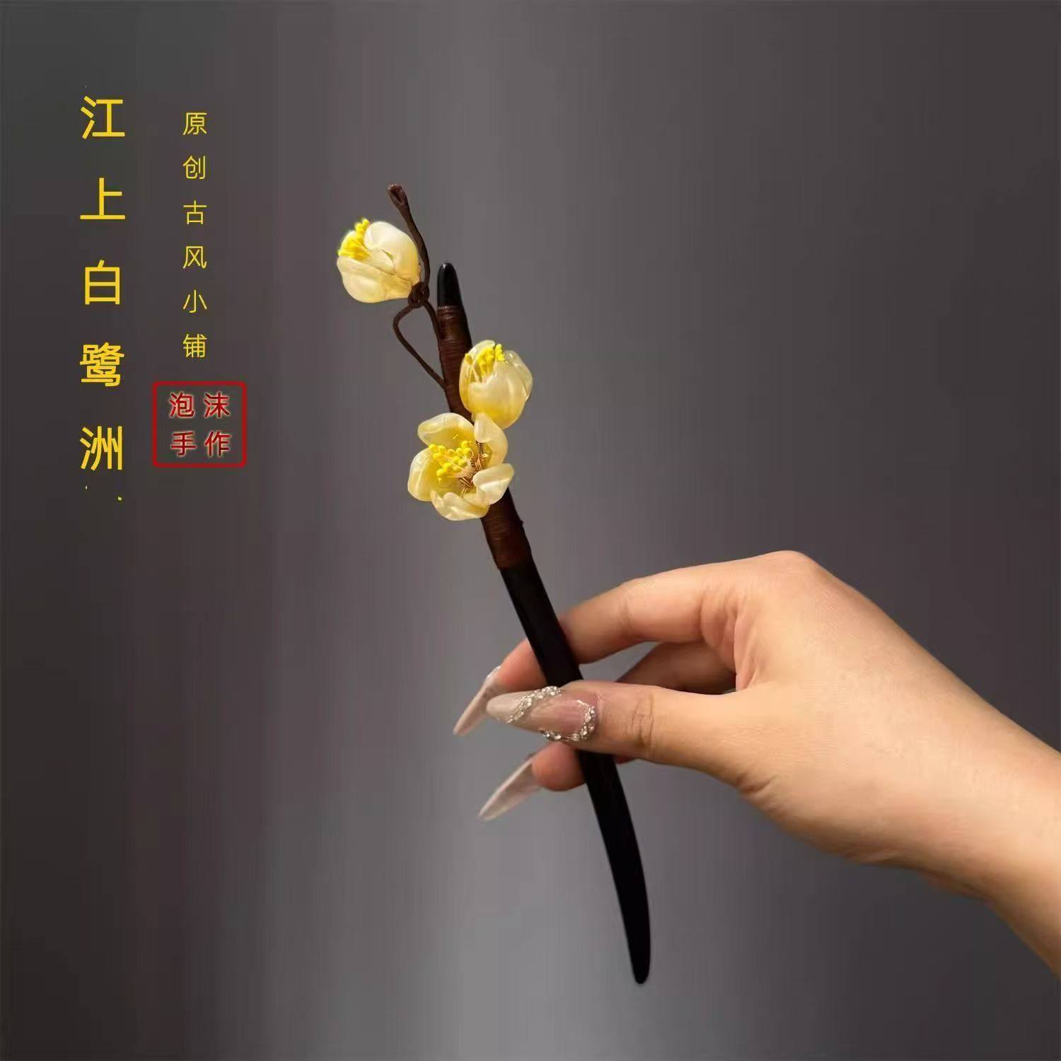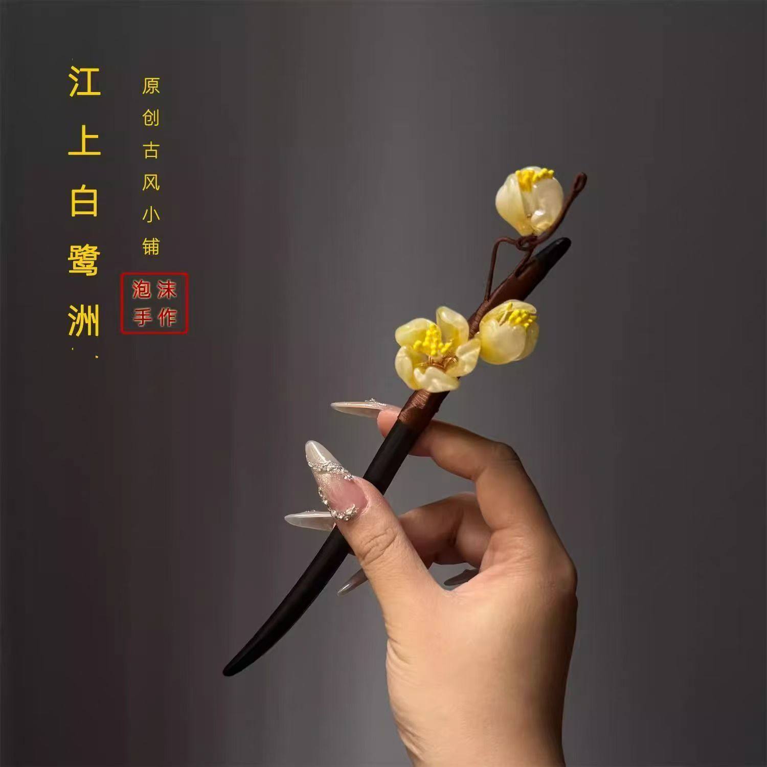 白鹭洲腊梅花发簪日常百搭简约新中式盘发旗袍汉服挽发古典国风
