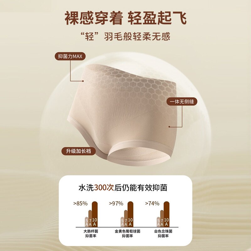 草本初色妇炎洁牌内裤女2025新中高腰加长纯棉底裆无痕抗菌三角裤