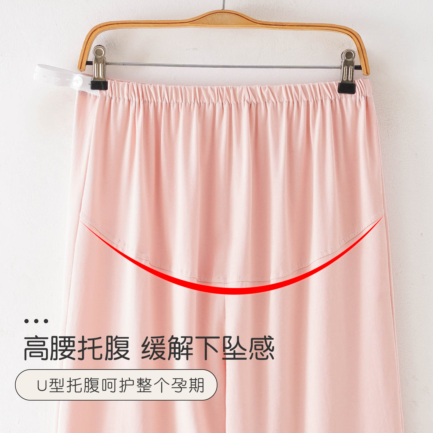 婧麒孕妇睡裤不勒肚可调节纯棉孕妇裤可外穿大码休闲家居裤托腹裤