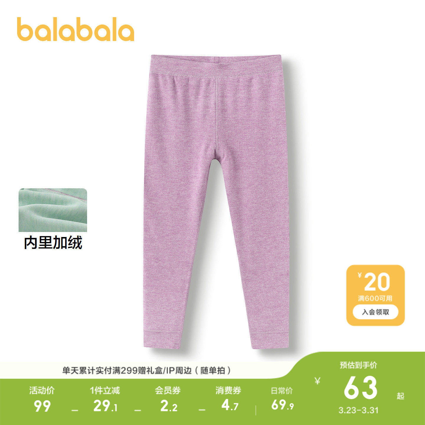 巴拉巴拉男女保暖裤儿童睡裤打底裤童装秋冬纯色柔软保暖舒适亲肤