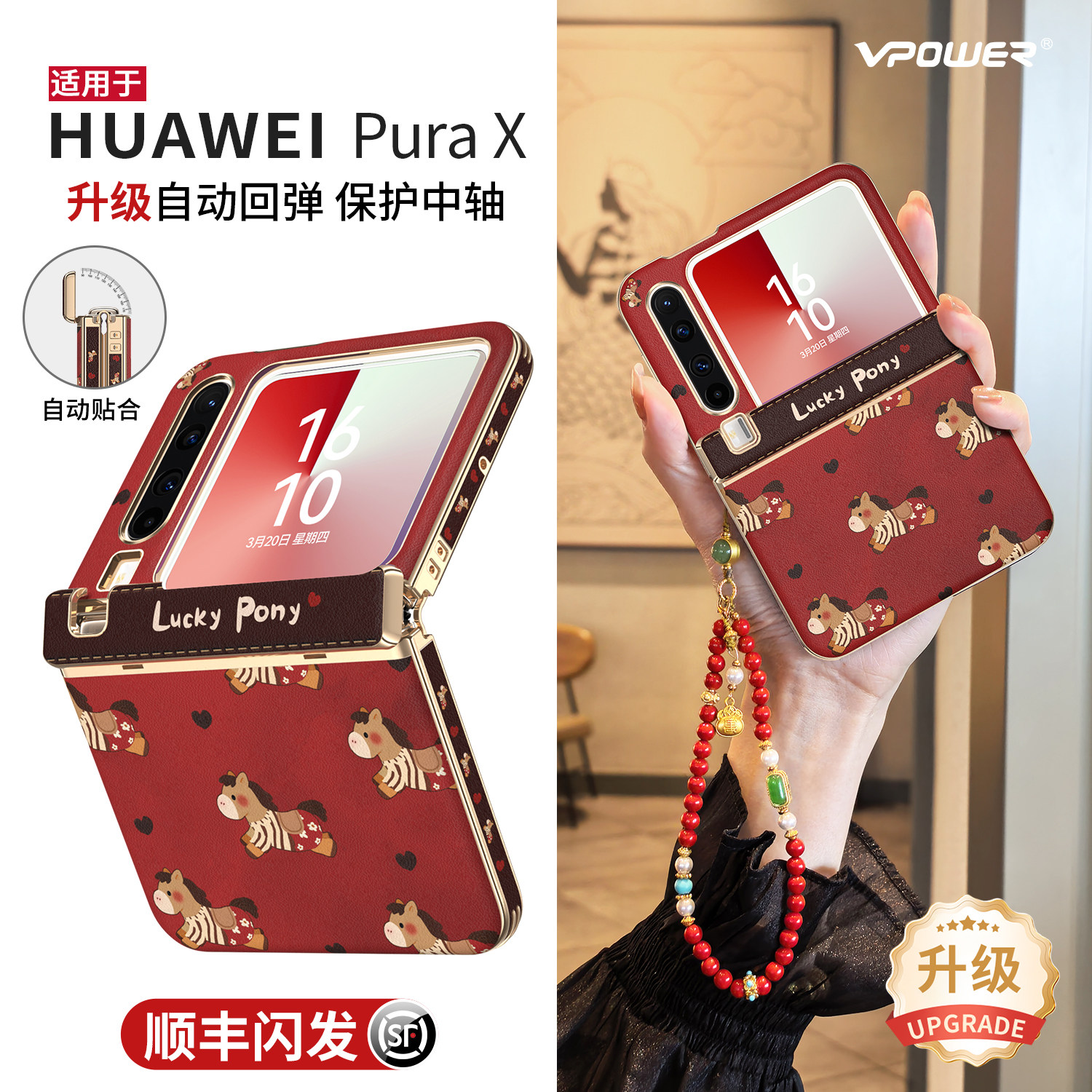 2026复古小马适用华为purax手机壳新款pura典藏版x中轴全包保护套带挂绳折叠屏新年手提链条防摔外壳秋冬马年