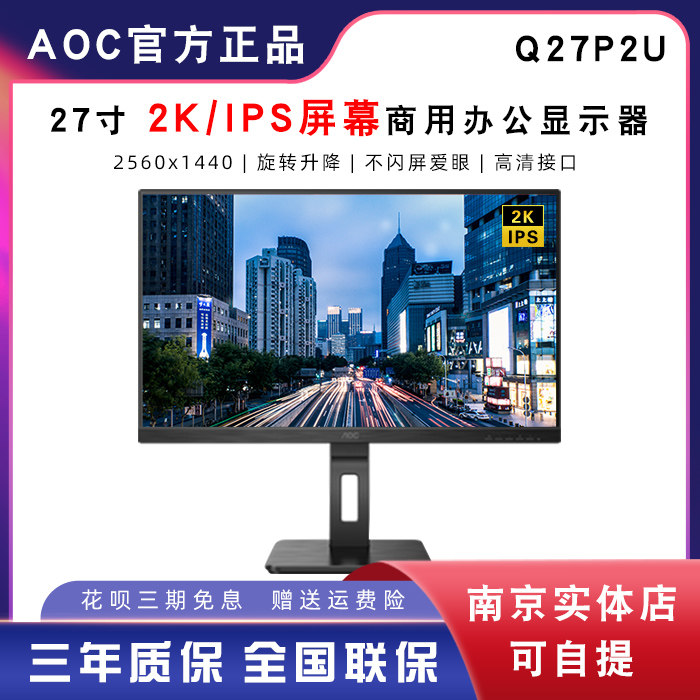 AOC U27P1U 27寸IPS屏4K高清液晶显示器壁挂升降旋转作图Q27P10