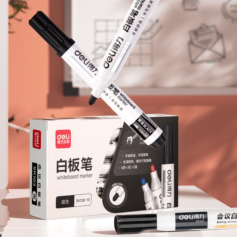 得力白板笔可擦培训会议室好写易擦大头笔教师用文具大容量墨水粗头笔油墨教育画板笔写字笔细头办公用品顺滑
