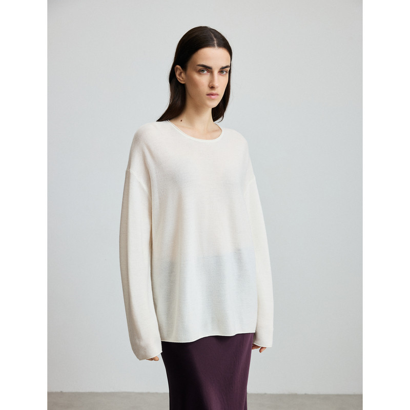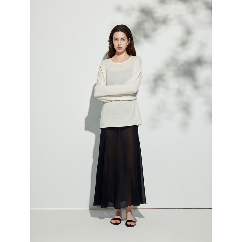 MISSCOCOON可可尼C3系列白色上衣羊毛珠片纱裸感亲肤空气感T恤女