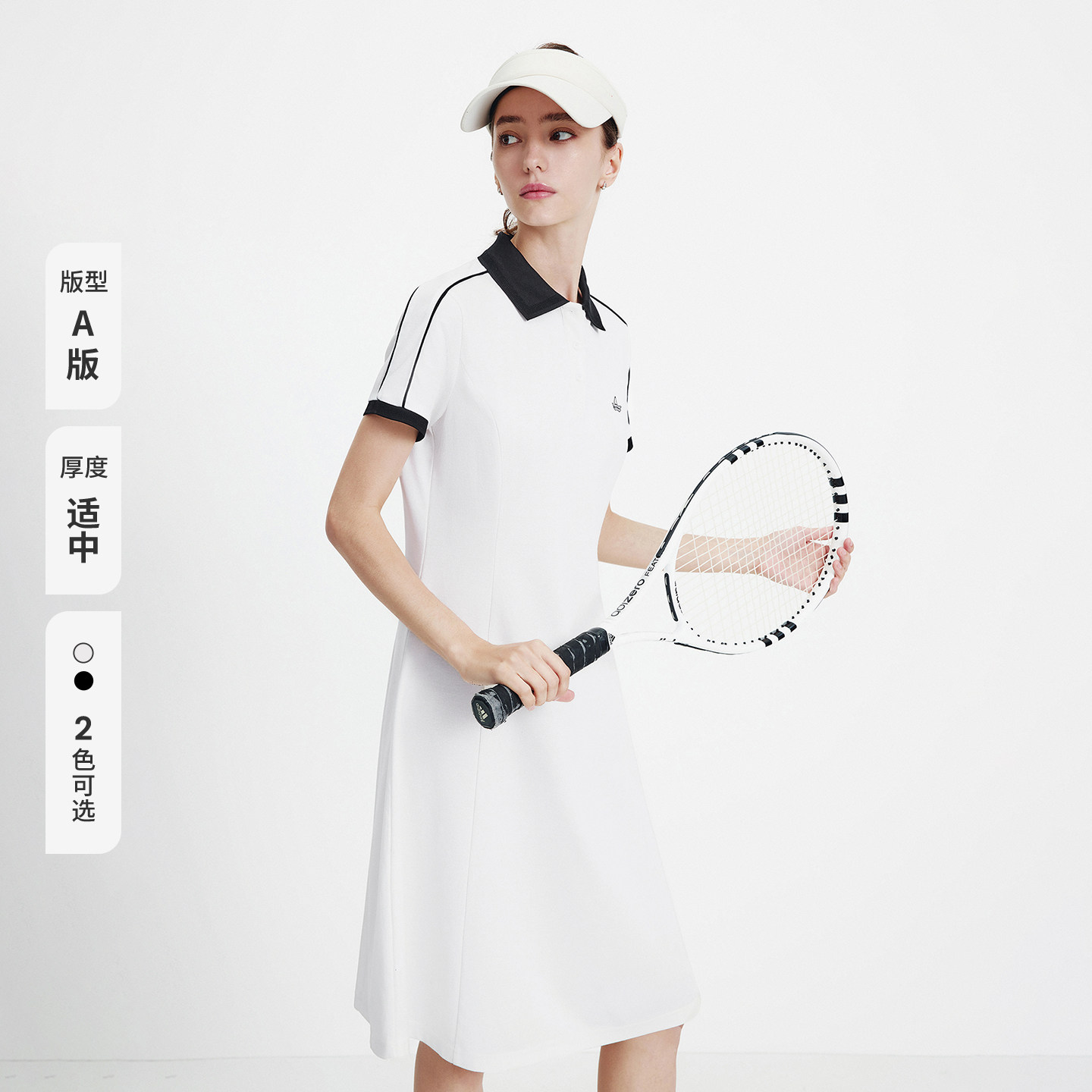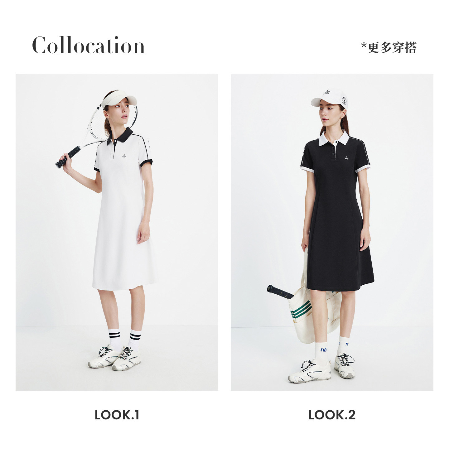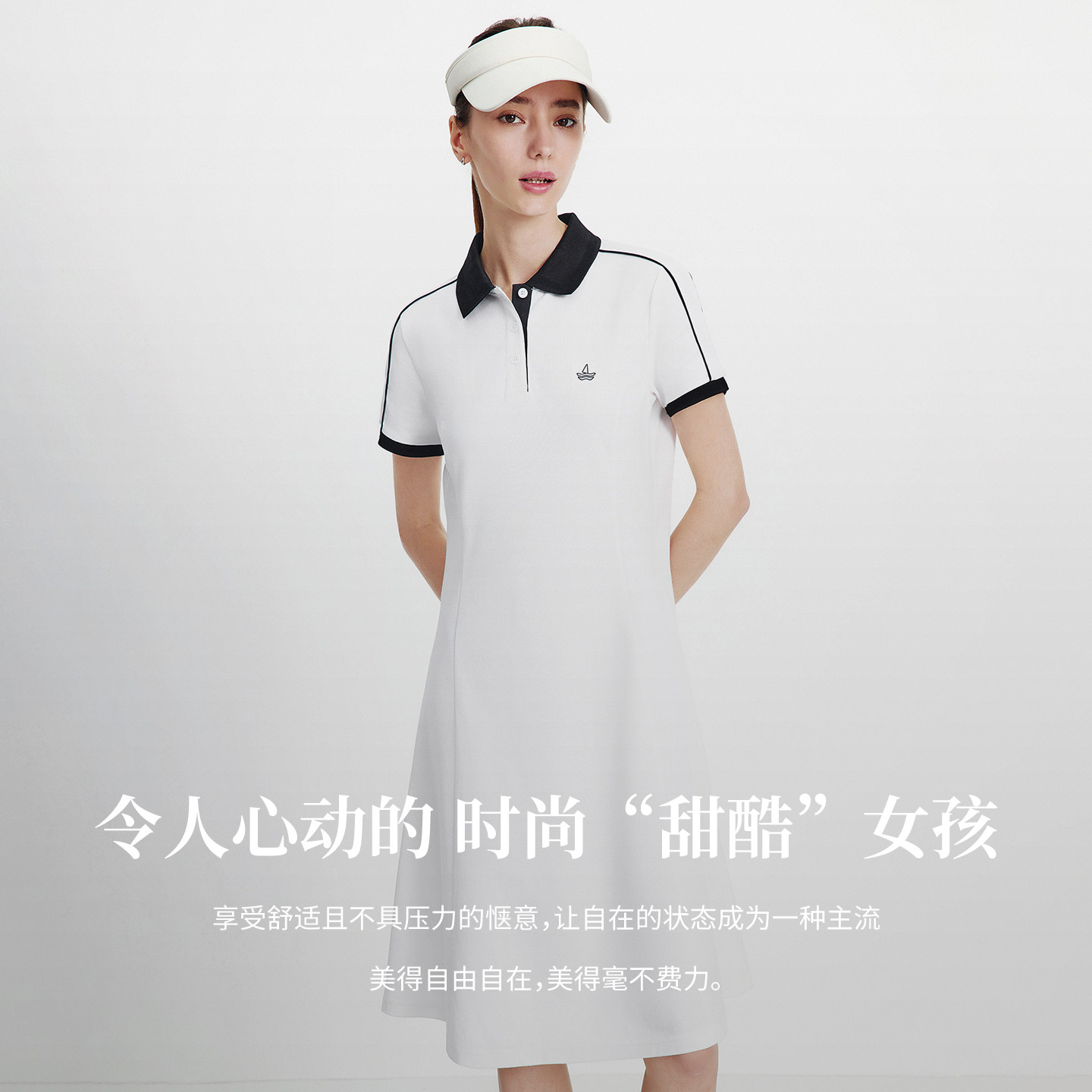 Navigare意大利小帆船白色运动短袖连衣裙女2026春夏凉感翻领裙子