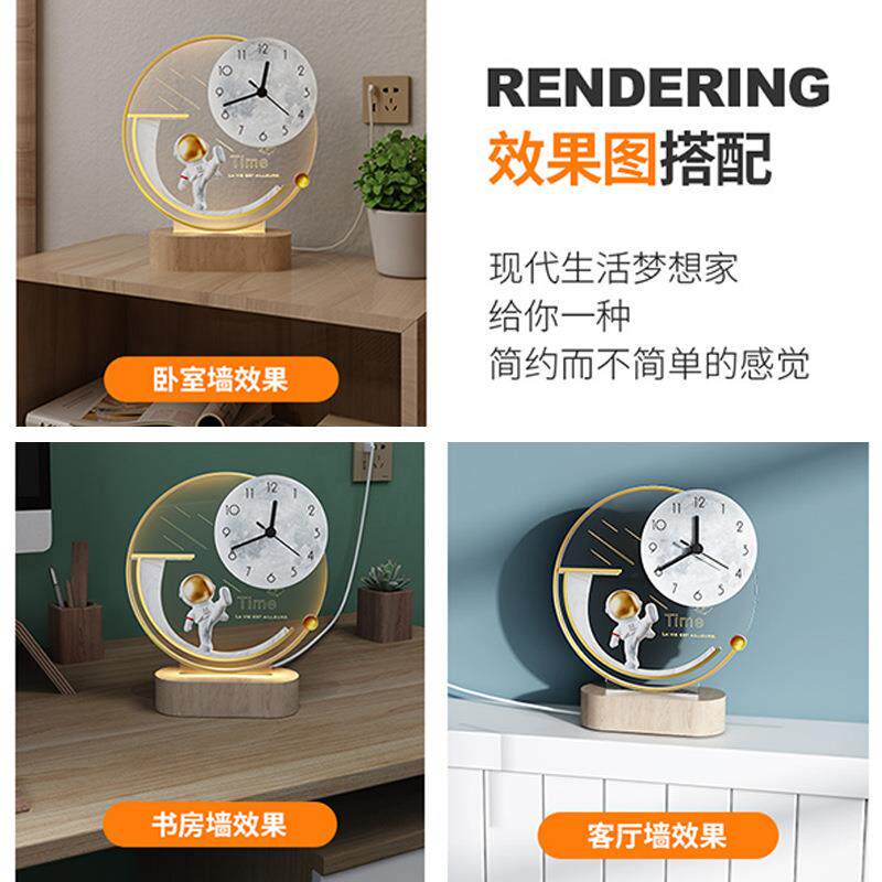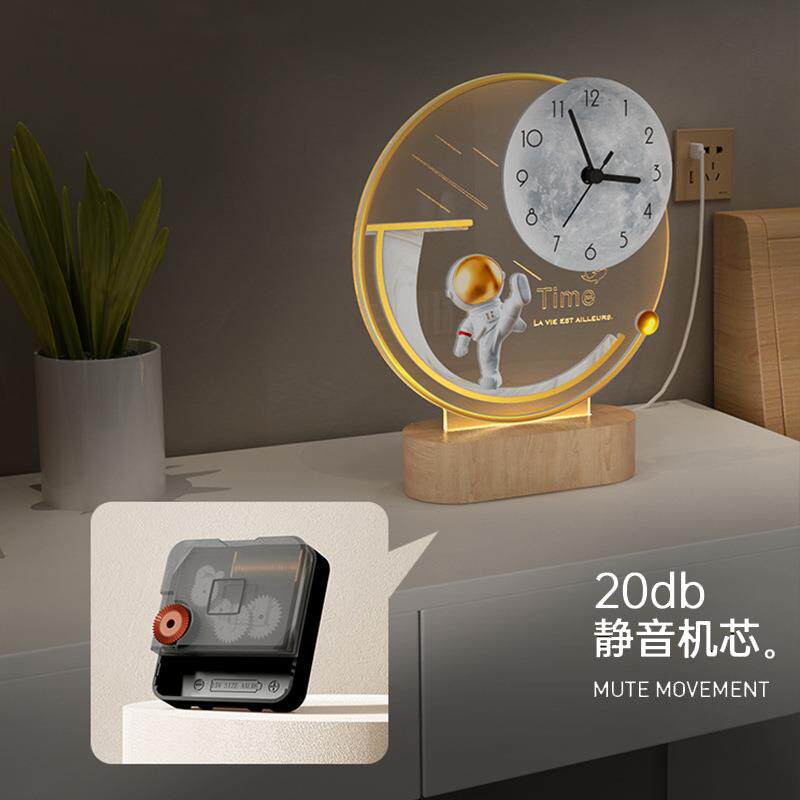 太空人客厅钟表卧室桌面立时钟家用网红创意装饰座钟静音钟表摆件