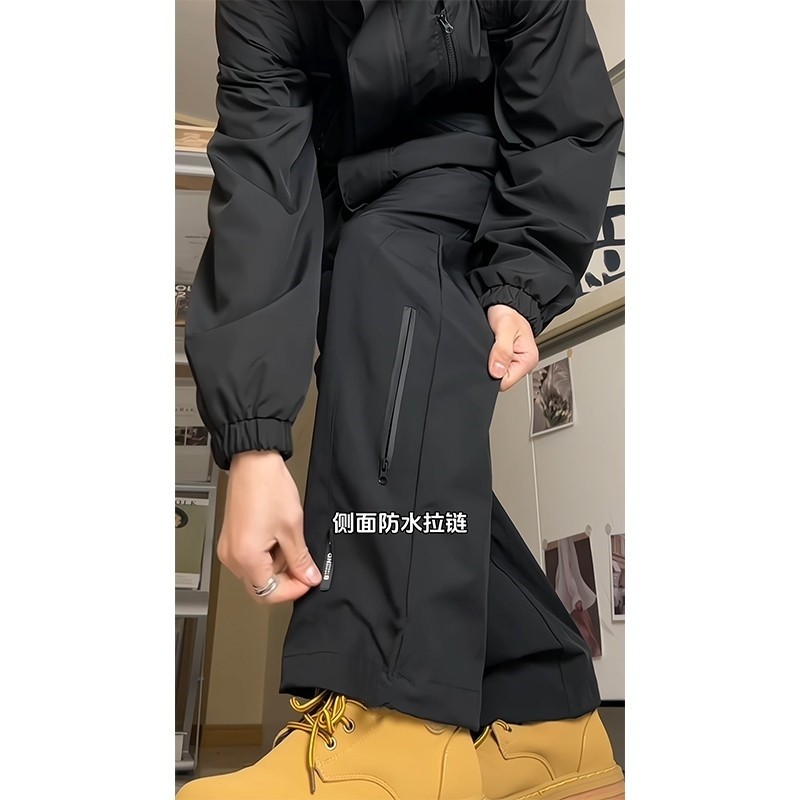 冲锋裤男士潮牌春秋2025新款防风宽松直筒运动工装休闲大码长裤子