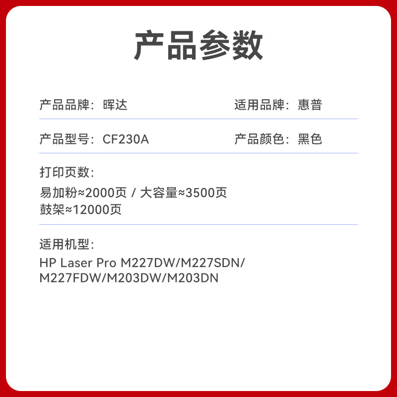 晖达适用惠普M227fdw硒鼓HP30A CF230A粉盒M227fdn sdn M227d打印机墨盒CF232A 32a M203dw M203dn nw M203d