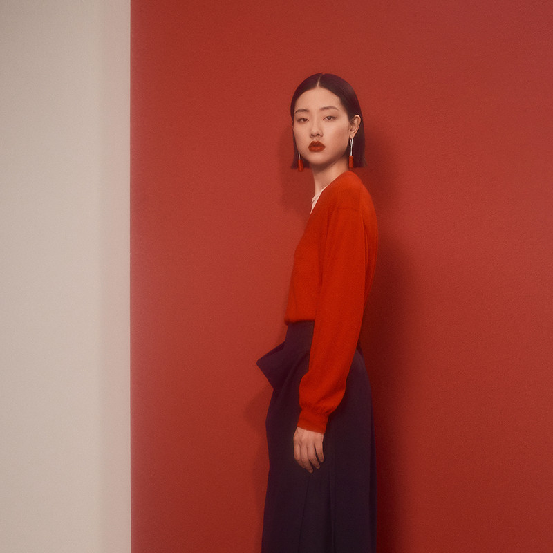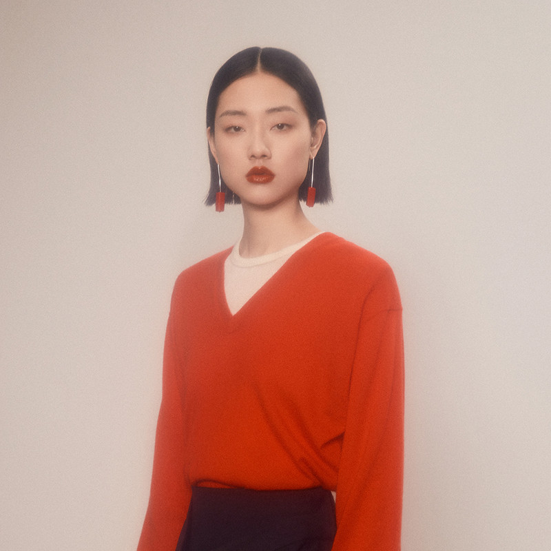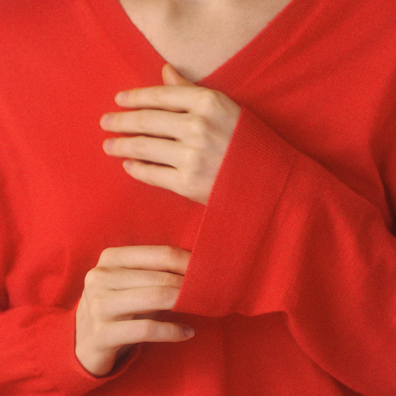 【0压系列】LESS红色针织衫女秋冬基础柔软V领山羊绒衫2OB313900