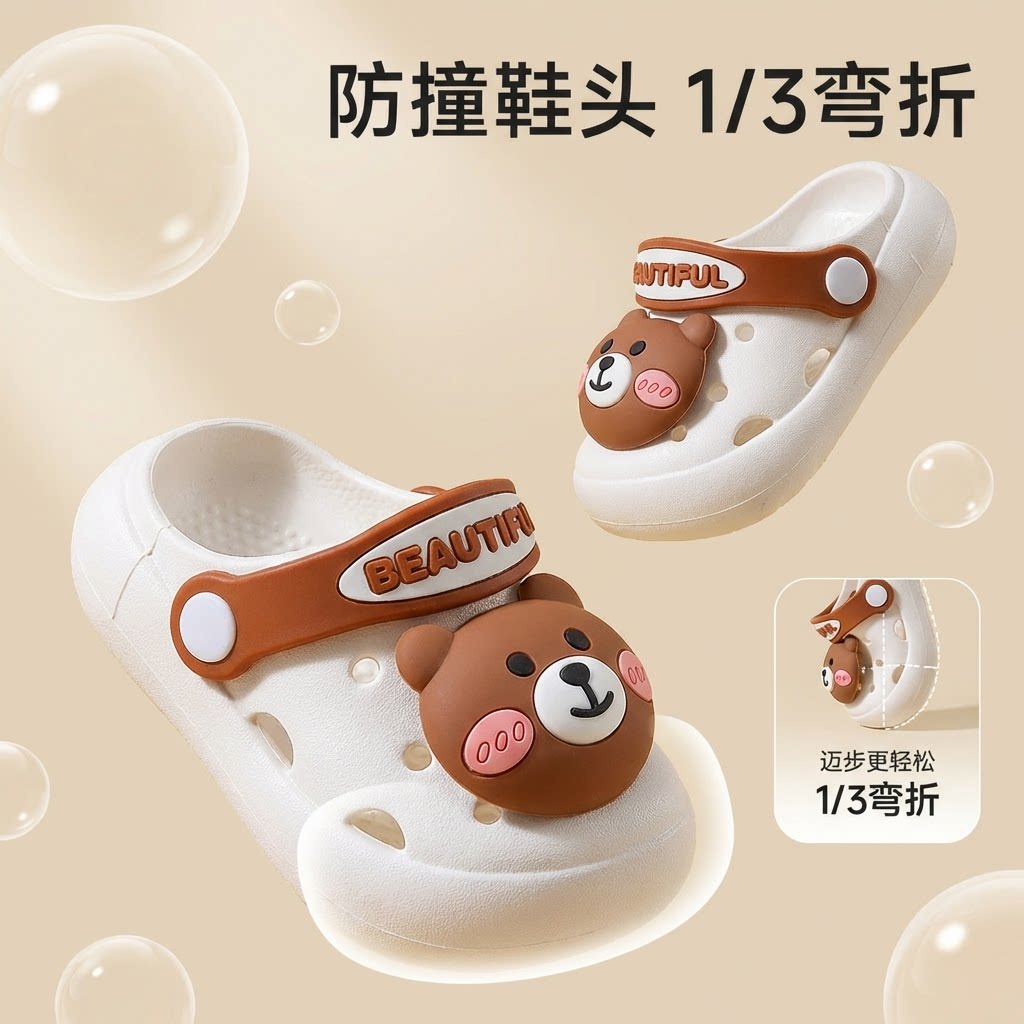 婧麒洞洞鞋新款夏季室内可爱软底宝宝凉拖鞋男童女童包头防滑外穿