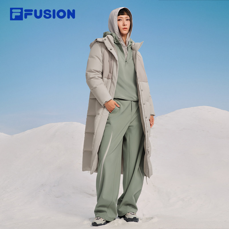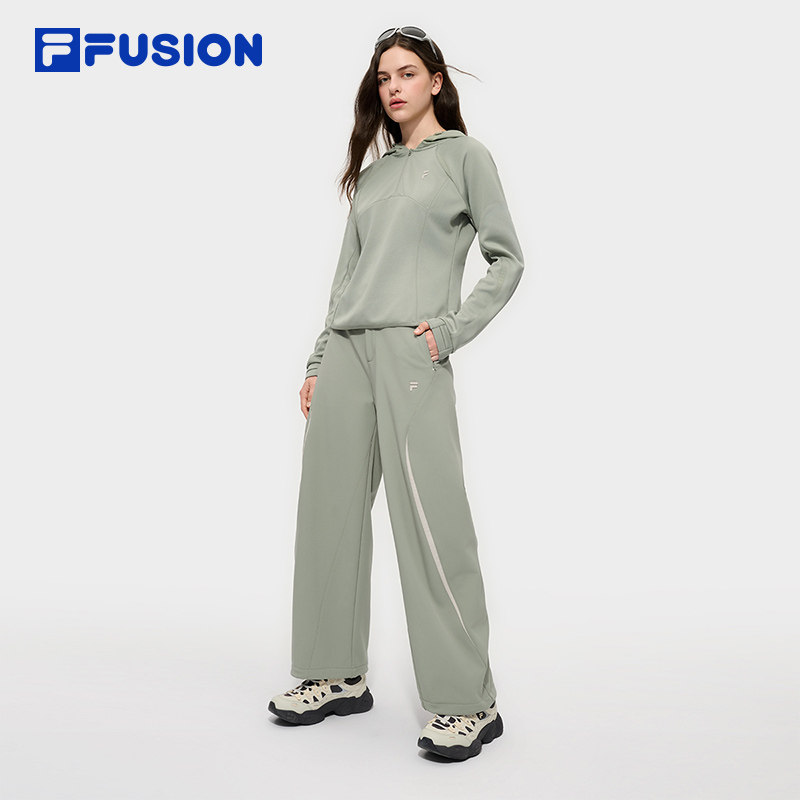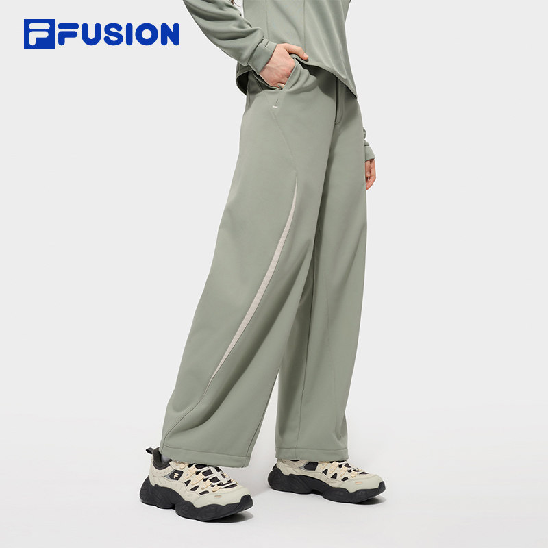 FILA FUSION斐乐潮牌梭织长裤女2025冬季新款时尚宽松加绒休闲裤