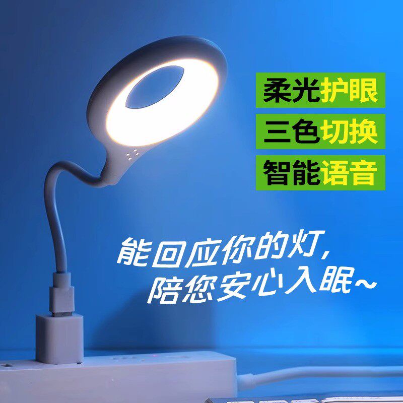 人工智能语音控制创意小夜灯USB语音声控LED护眼灯家用卧室床头灯