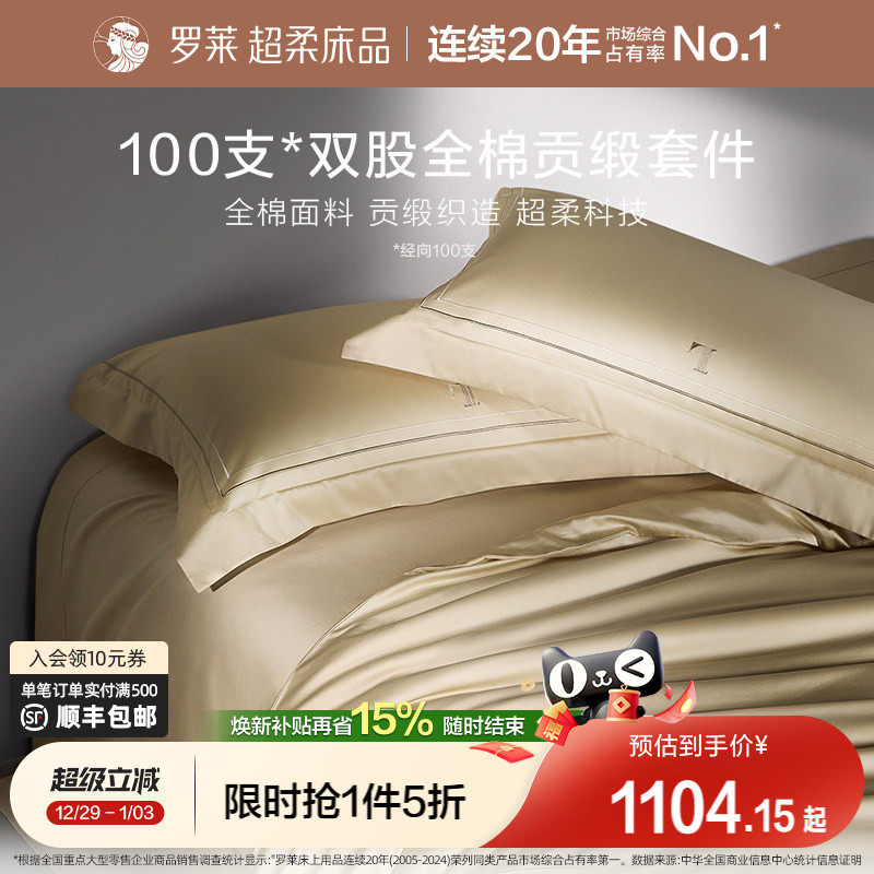 罗莱家纺100支长绒棉四件套全棉贡缎床单被套宿舍双人床上用品