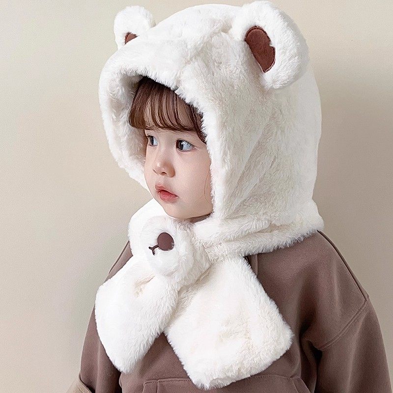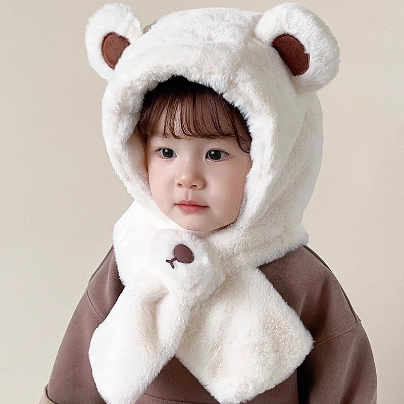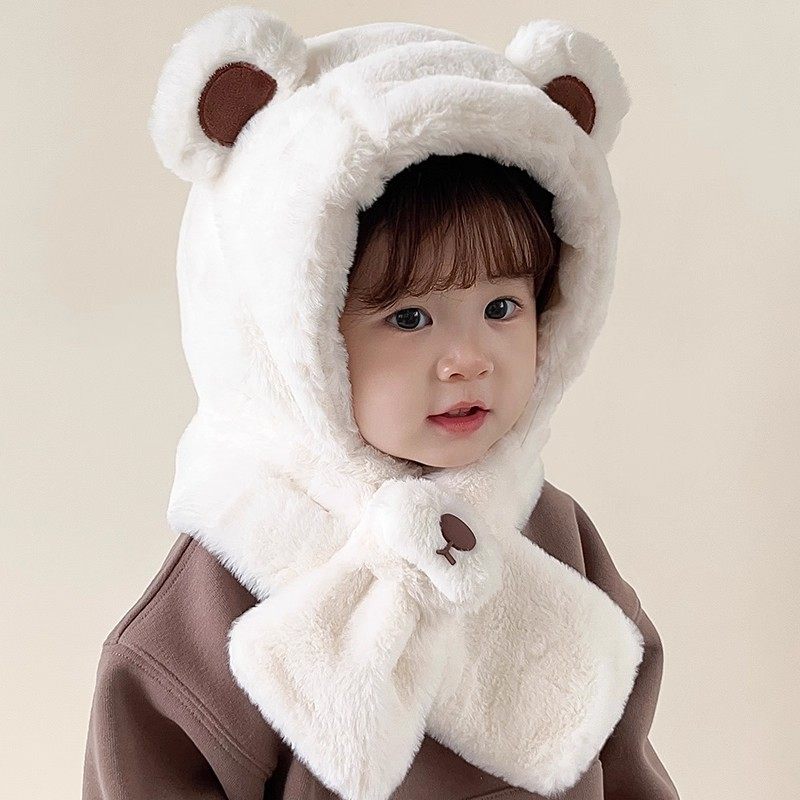 尼多熊婴儿帽子秋围脖一体宝宝毛绒帽防风护耳帽冬季保暖婴幼儿帽