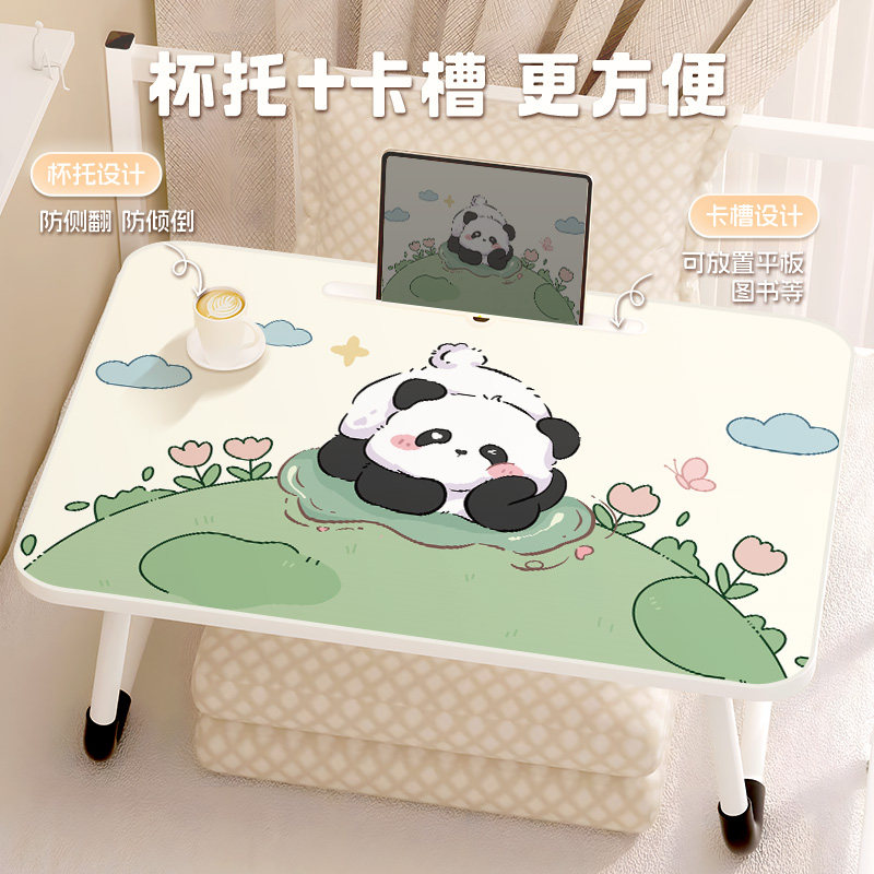 调皮熊猫床上小桌子办公桌宿舍学生学习桌写字可折叠桌家用儿童卧室飘窗阳台膝上桌笔记本电脑支架床上书桌
