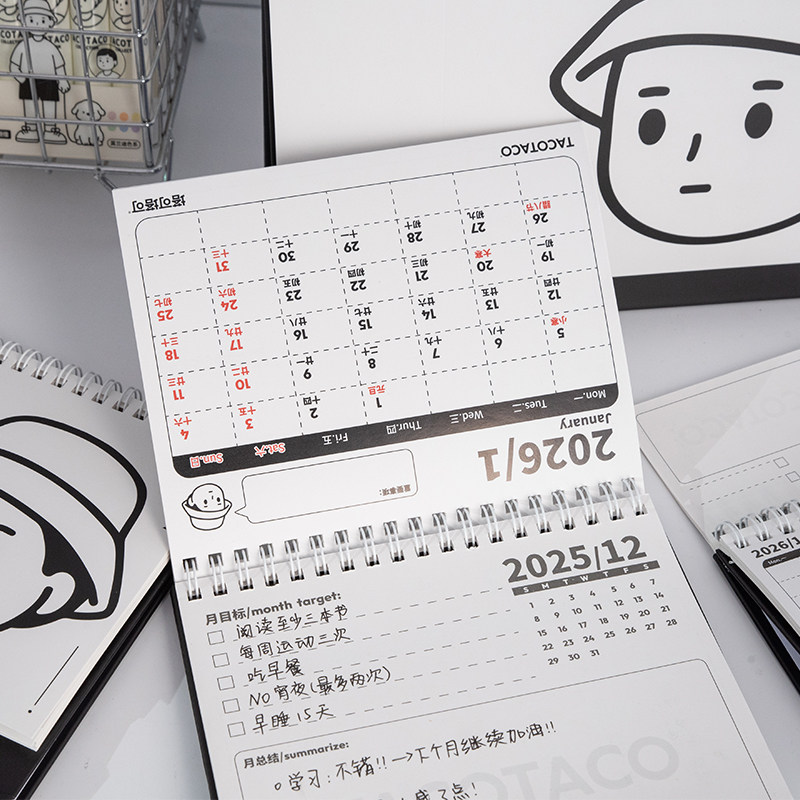 TacoTaco台历2026年简约办公室桌面摆件日历月历台历手账本记事本笔记本备忘录创意ins风商务办公计划本新款