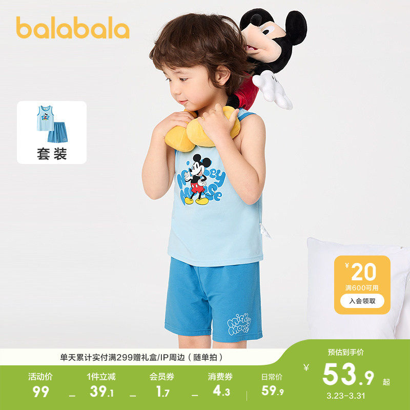 【迪士尼IP】巴拉巴拉儿童背心套装夏季空调服男女童睡衣家居服萌