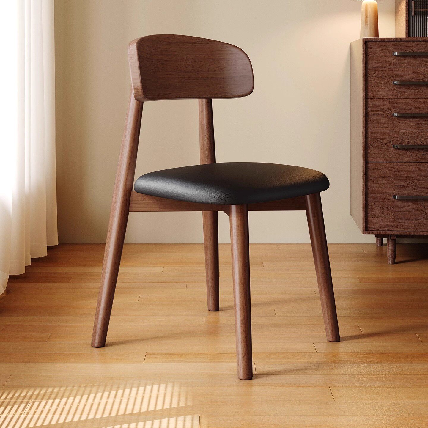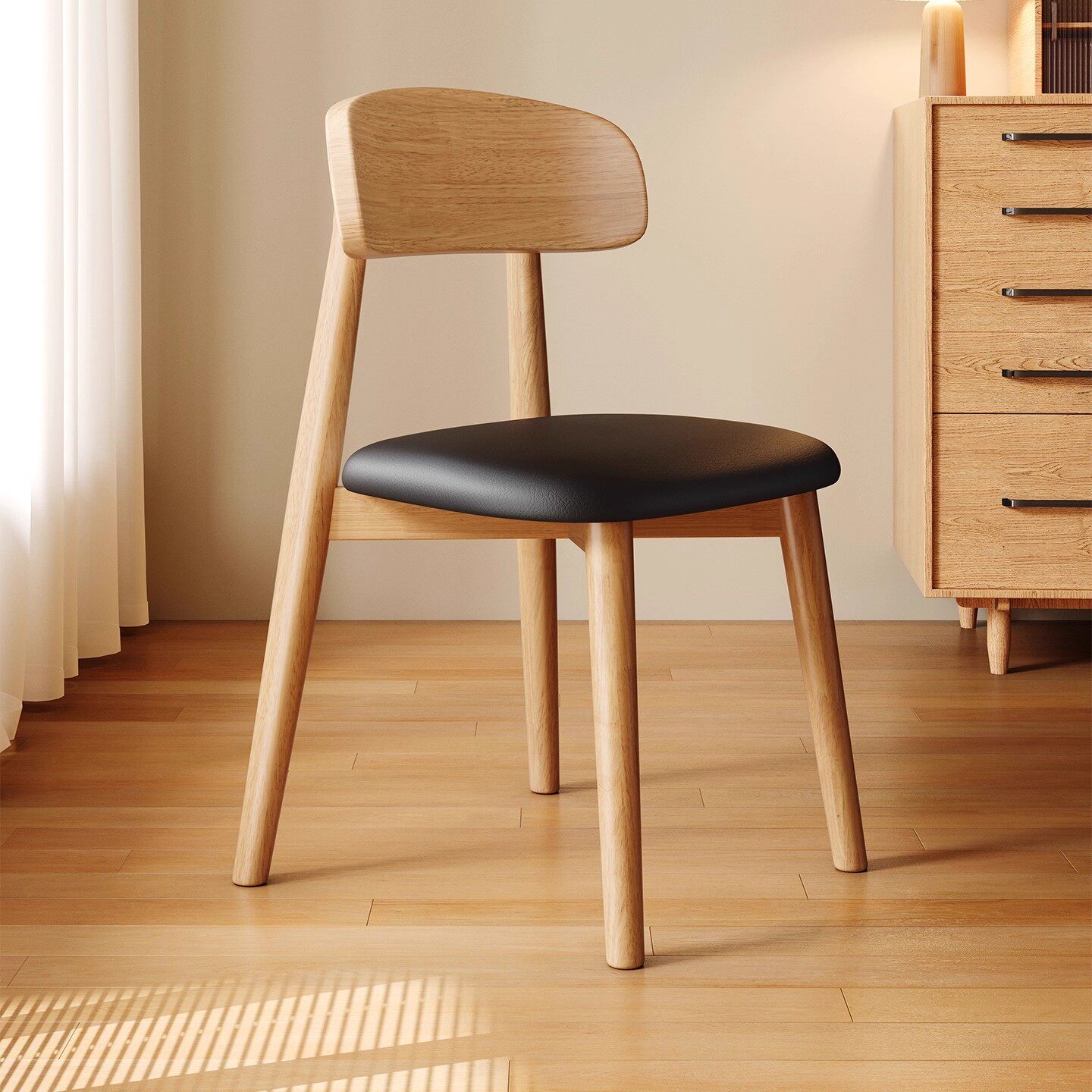 轻奢侘寂风餐椅皮软包设计师现代弯曲木咖啡厅实木椅子家用书房椅