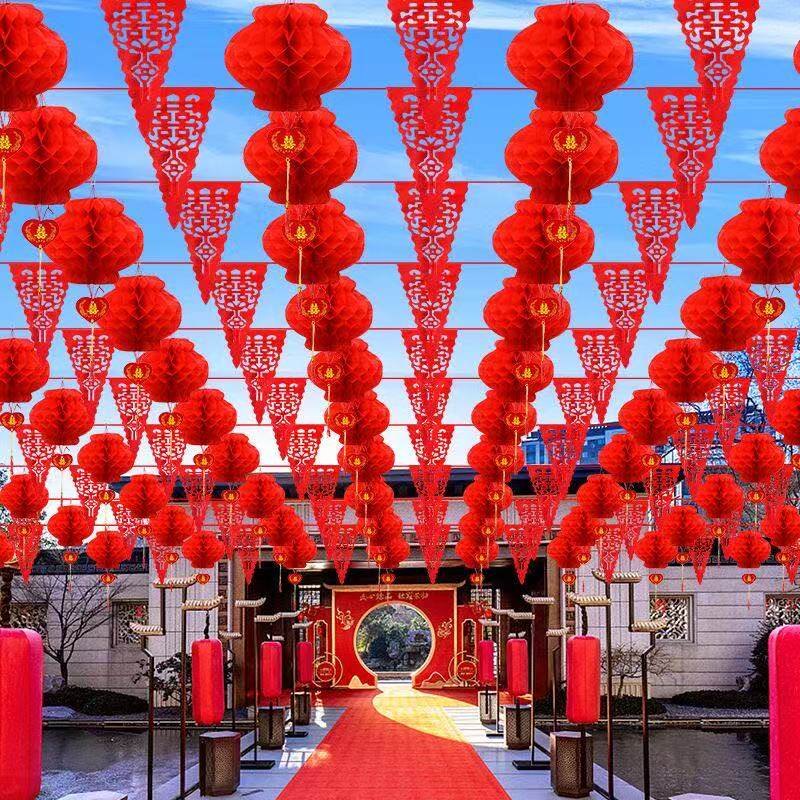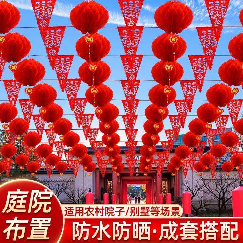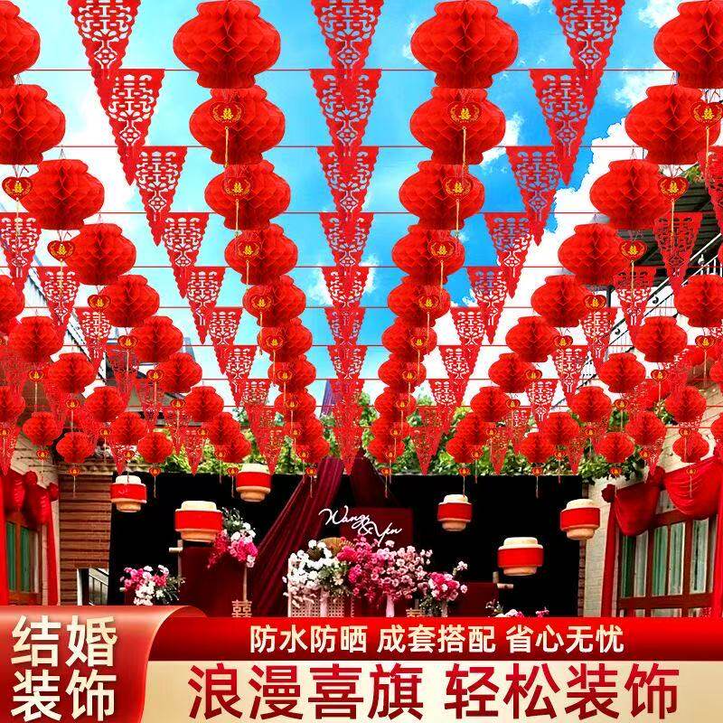 结婚装饰彩旗灯笼农村院子拉花户外婚礼场景布置装饰室外婚庆开业