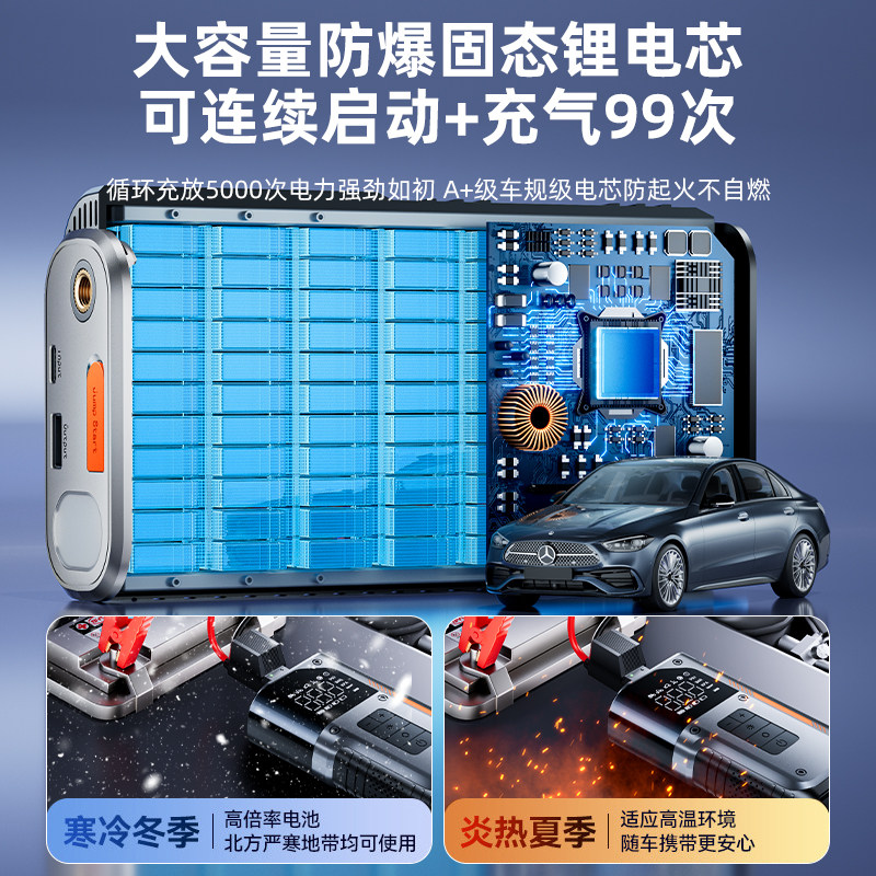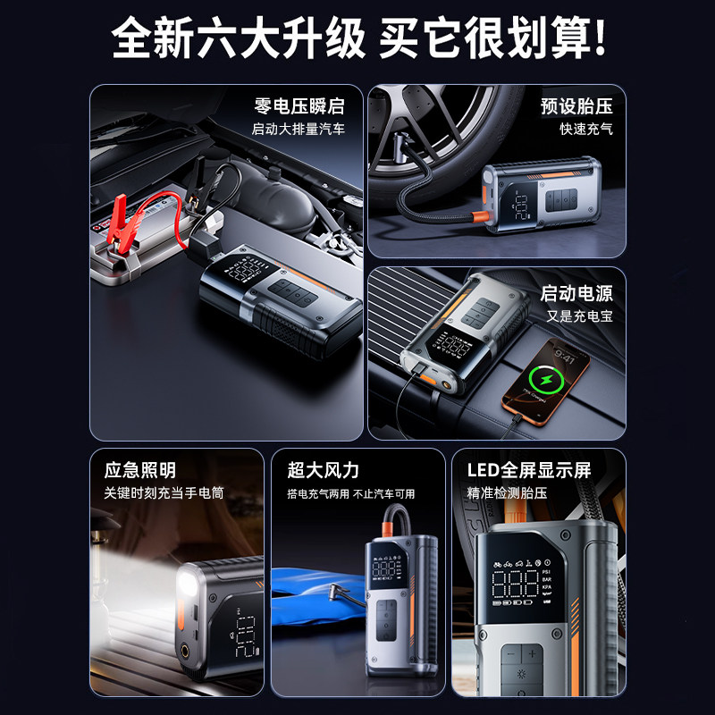 汽车应急启动电源强启动专用12v24v功率搭电神器搭电宝充气泵一体