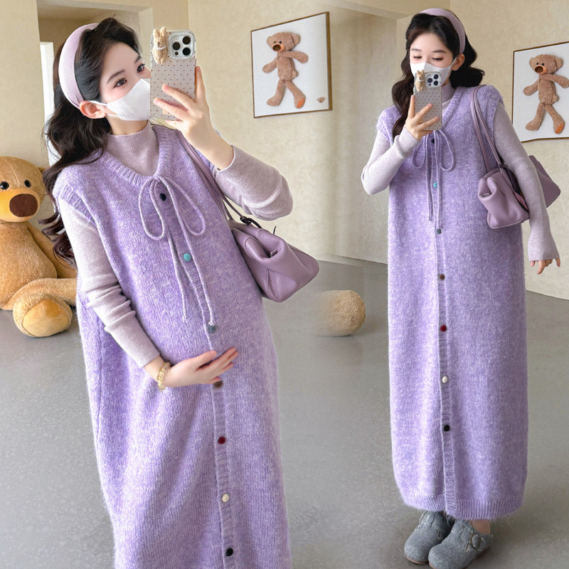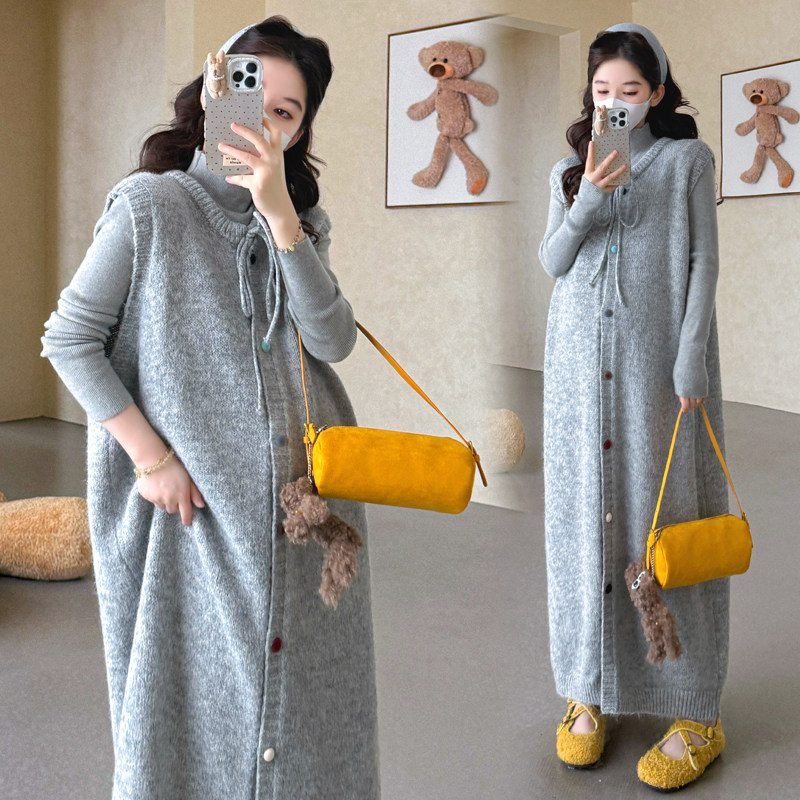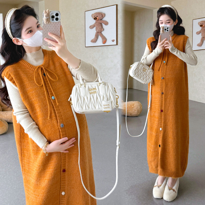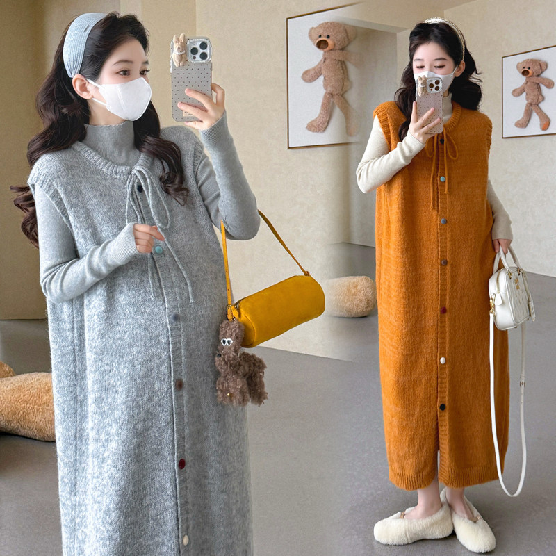 婧麒孕妇装秋冬新款温柔慵懒风针织背心连衣裙秋冬长裙显瘦打底裙