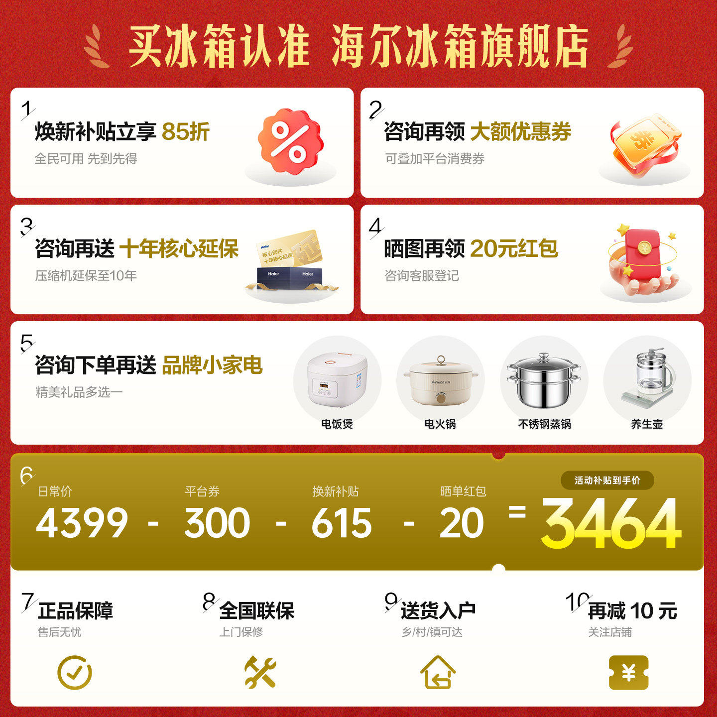 海尔冰箱以旧换新补贴476L十字双开门大容量家用一级能效无霜官方