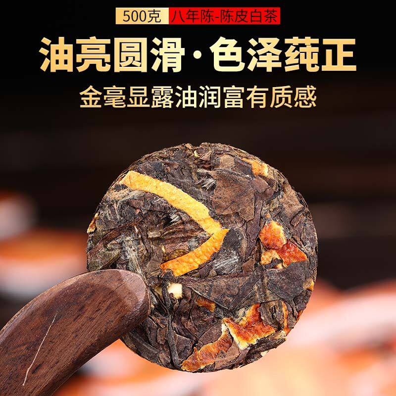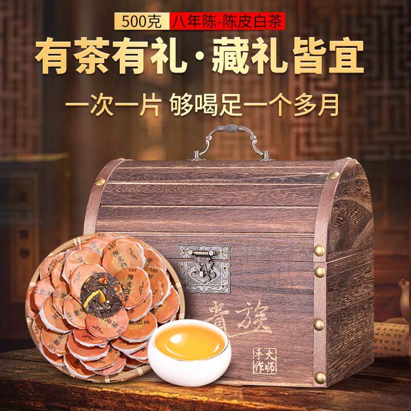陈皮白茶八年正宗福鼎老白茶寿眉贡眉小方片白茶饼茶叶礼盒装送礼