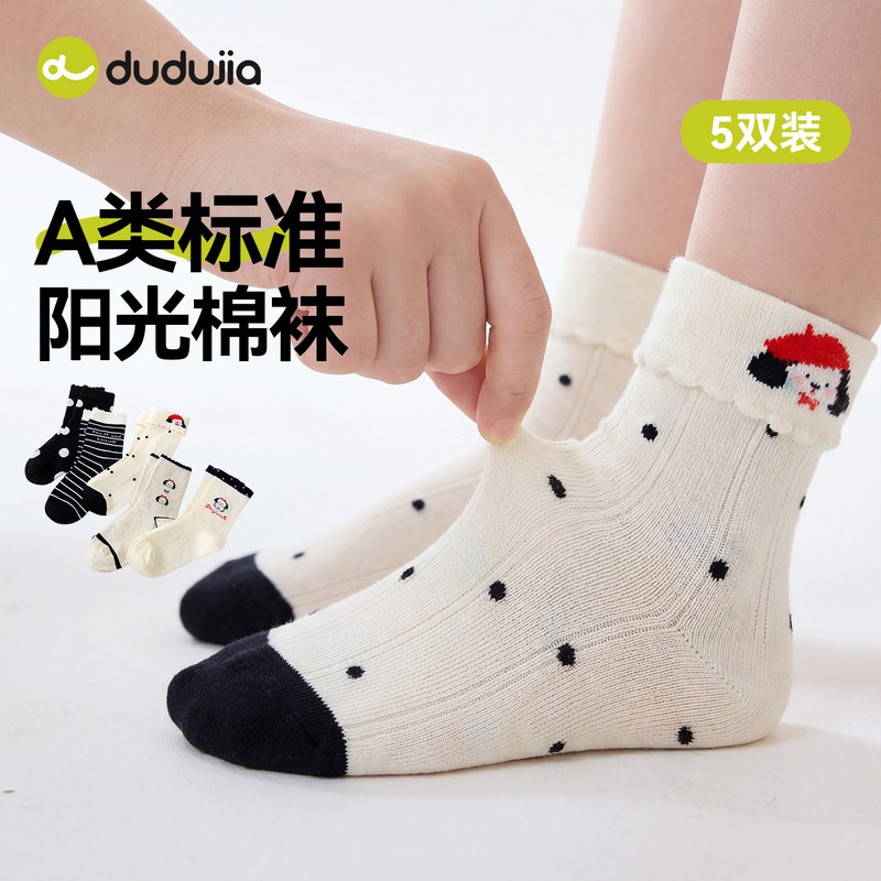 【A类标准】嘟嘟家儿童袜子女童中筒宝宝无骨女宝春款童袜5双棉袜