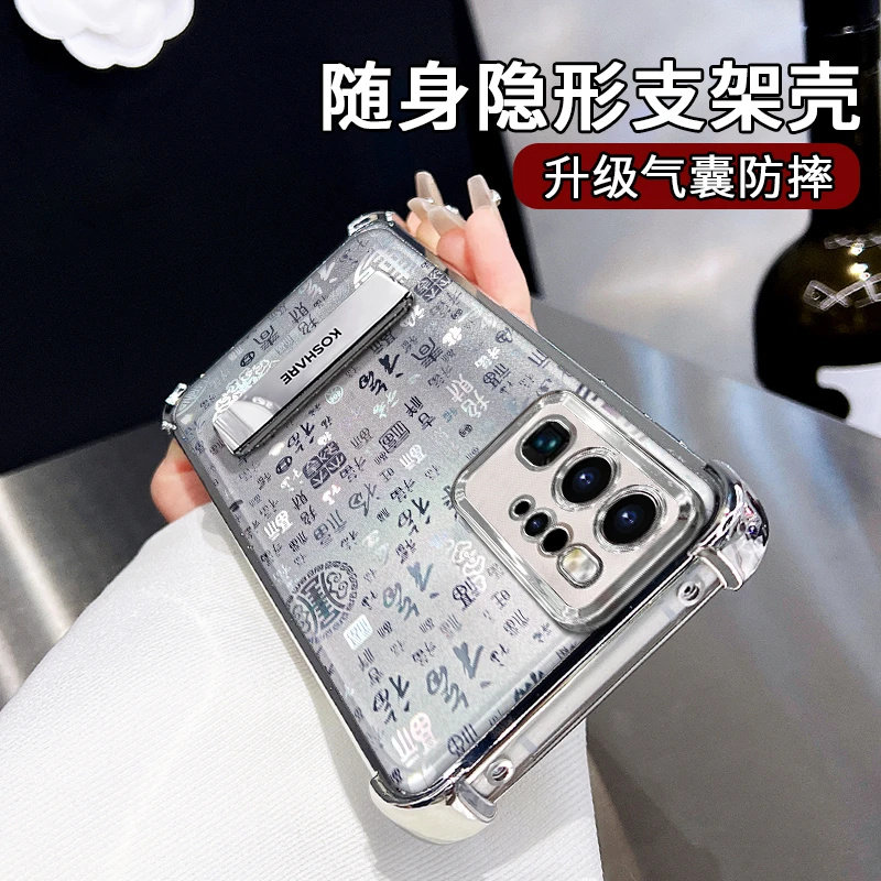新中式镭射百福图四角防摔支架适用华为p40pro手机壳新款高级感p40镜头全包保护套p50/60/70男女网红爆款外壳