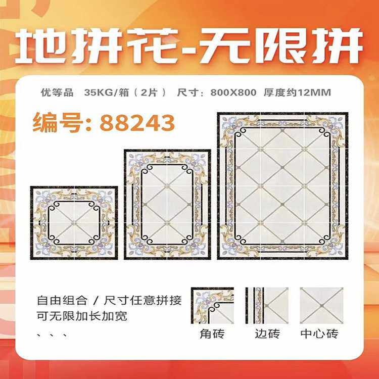 佛山玄关拼花瓷砖800x800 欧式拼花地砖圆形地毯花拼图造型抛晶砖