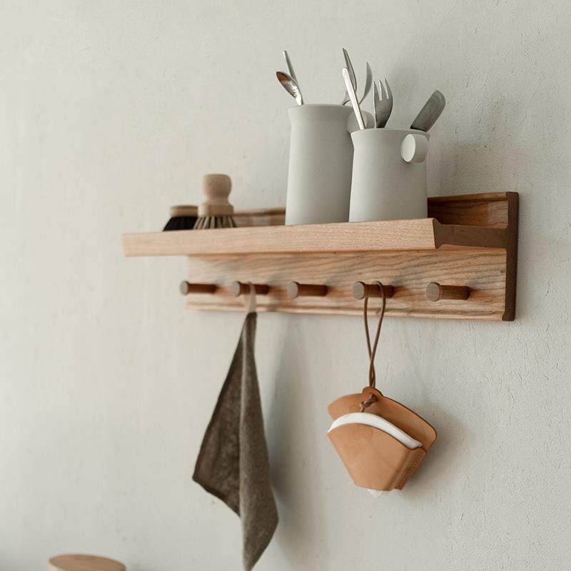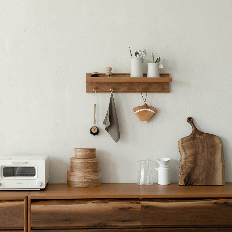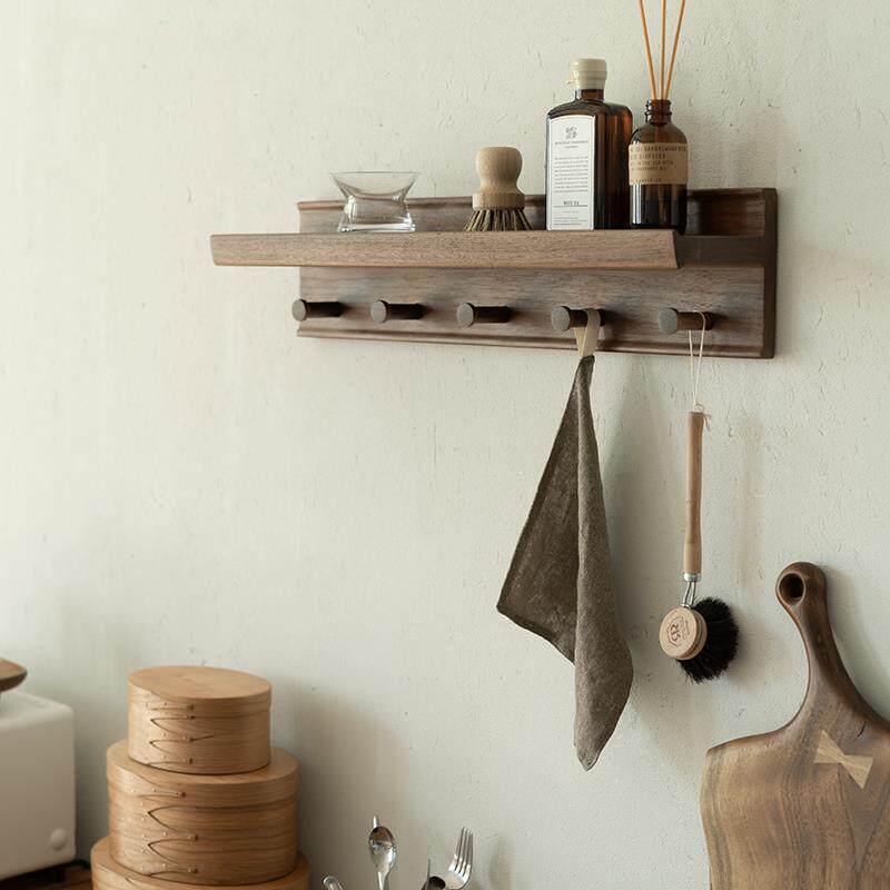 丁字挂钩搁板黑胡樱桃实木餐客厅墙面置物一字架进门