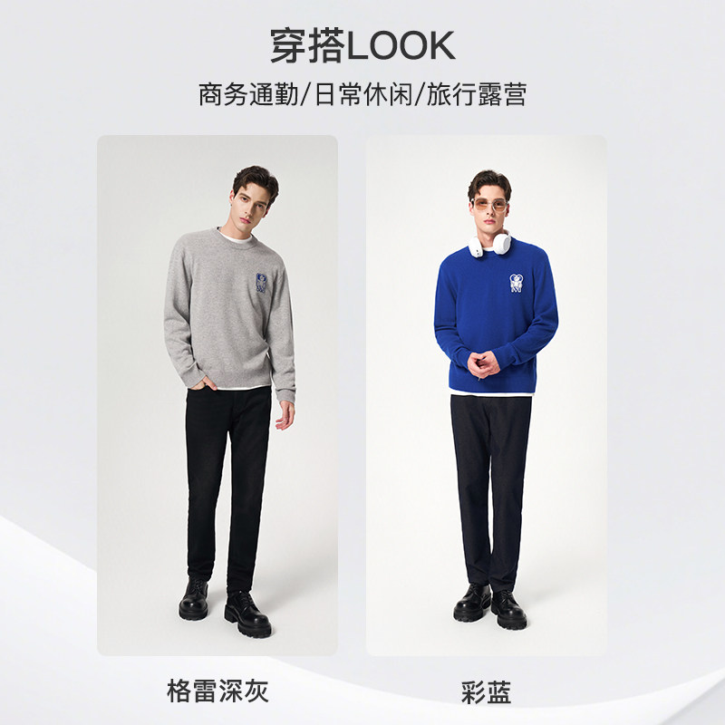 【纯羊毛】Mangano曼加龙 圆领针织衫秋冬季时尚毛衣纯色羊毛衫男