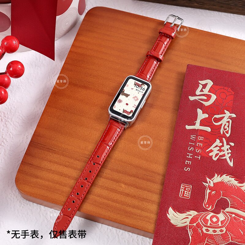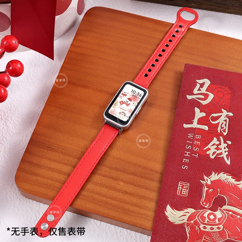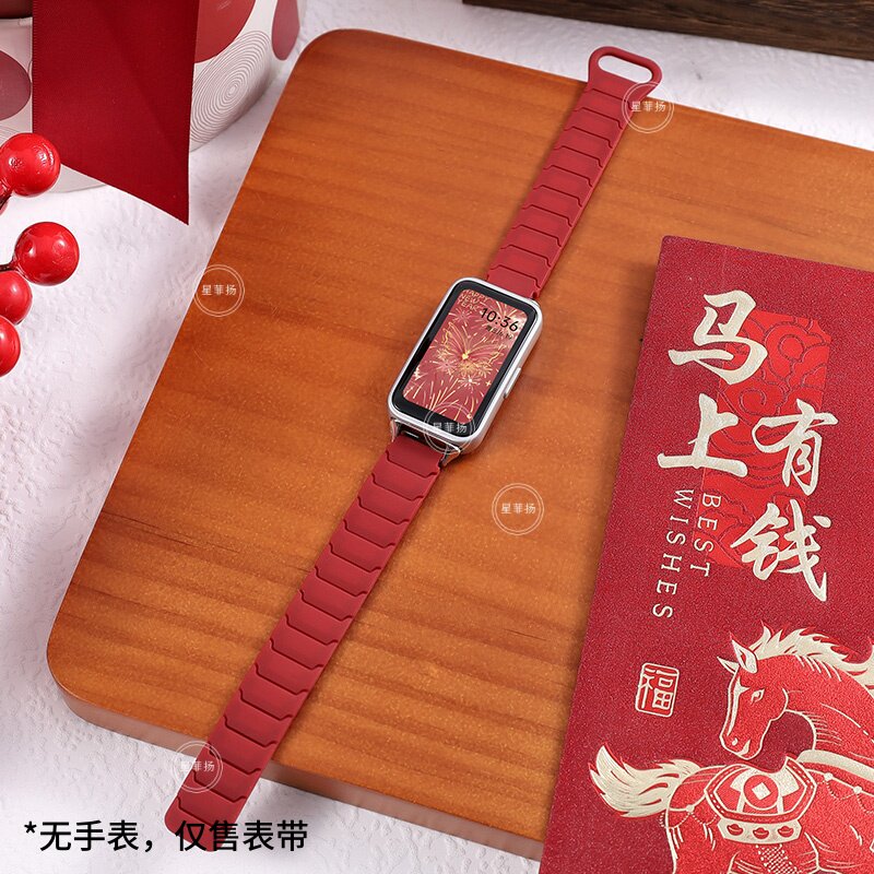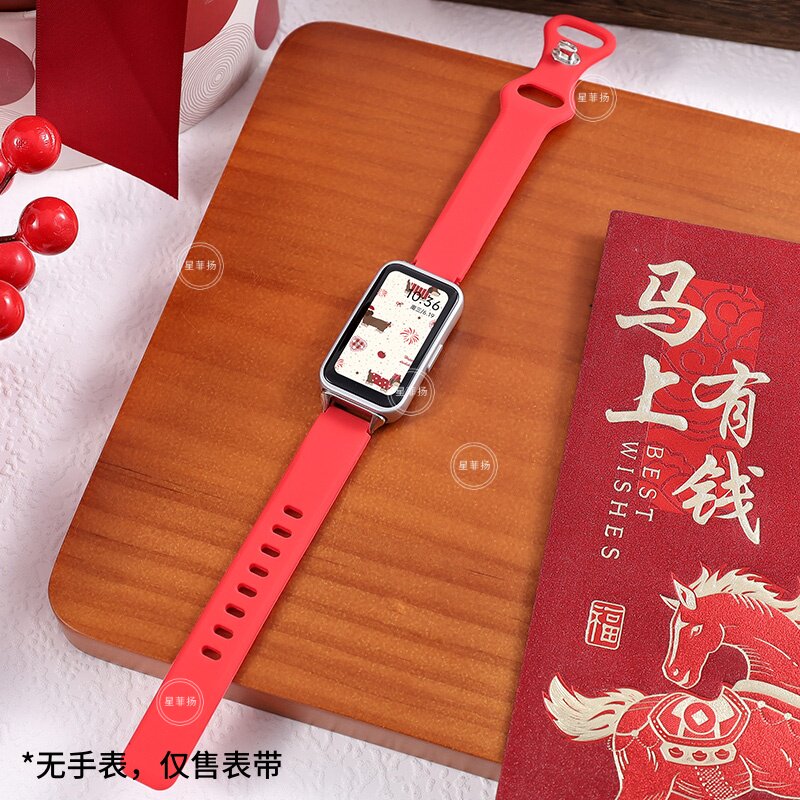 适用华为手环10/9/8NFC表带新年马年红色软壳拼色搭配十九八代平安夜学生款腕带新年红串珠个性男女生表带
