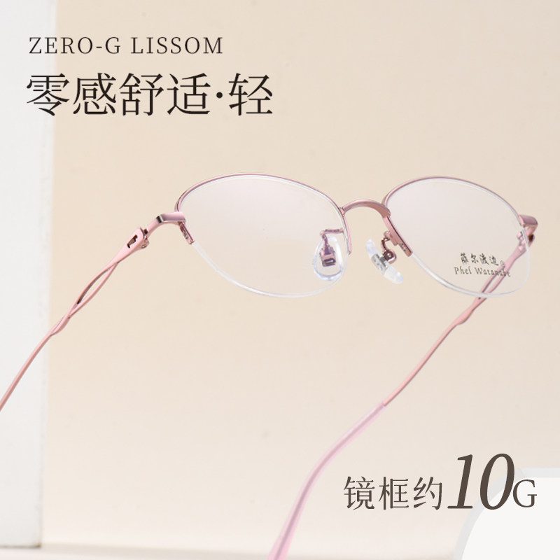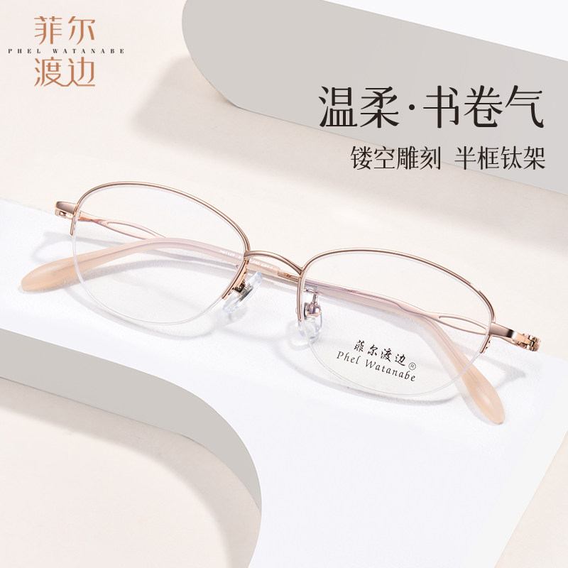高级感半框金丝钛架近视眼镜女温柔可配高度数小框镜架眼睛H61129