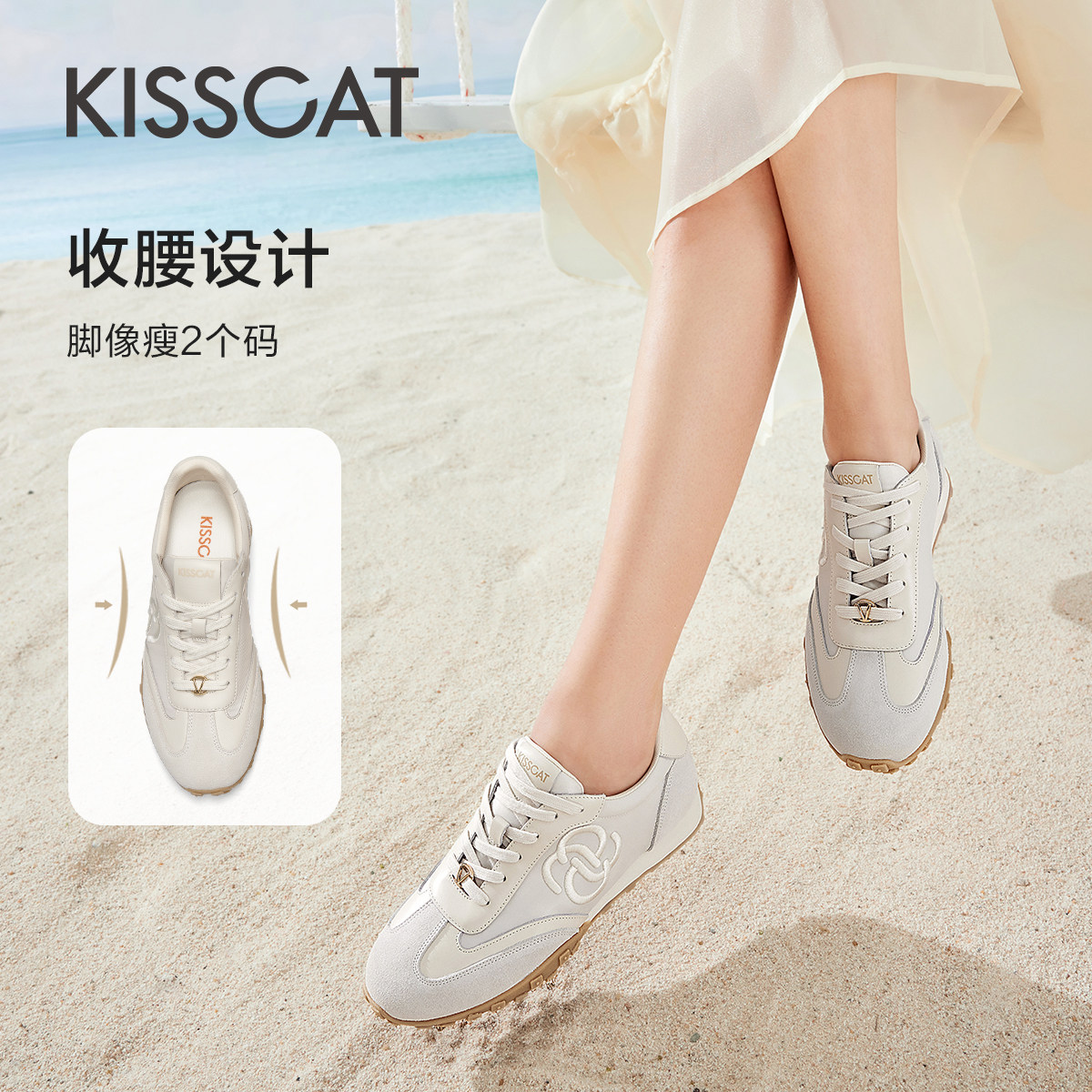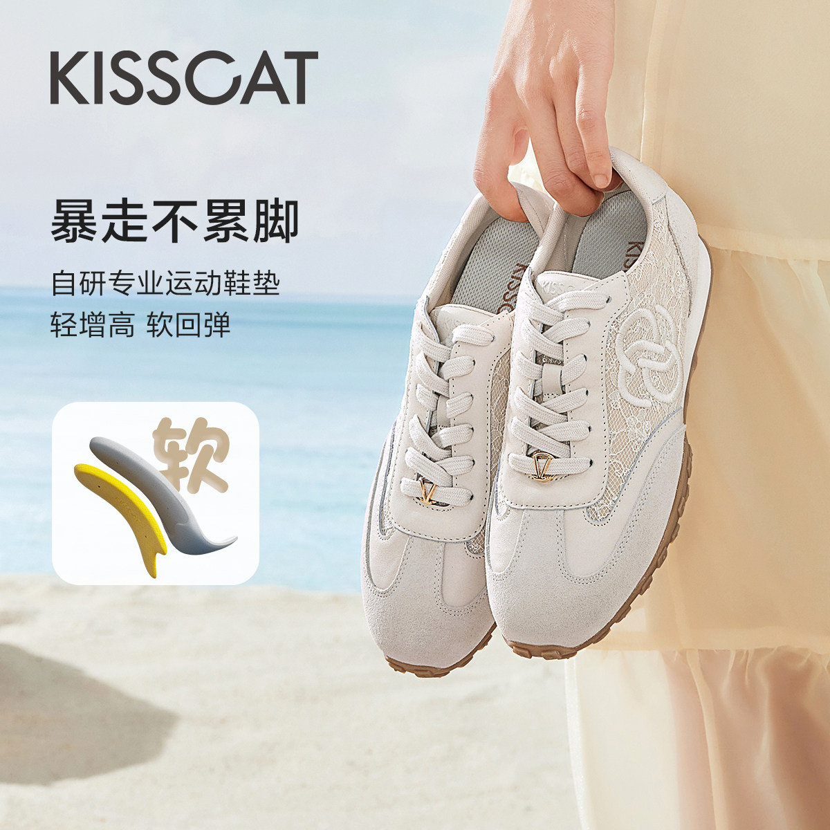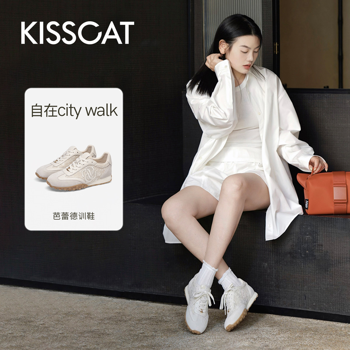 于文文同款KISSCAT接吻猫春季复古芭蕾德训鞋内增高运动休闲鞋女