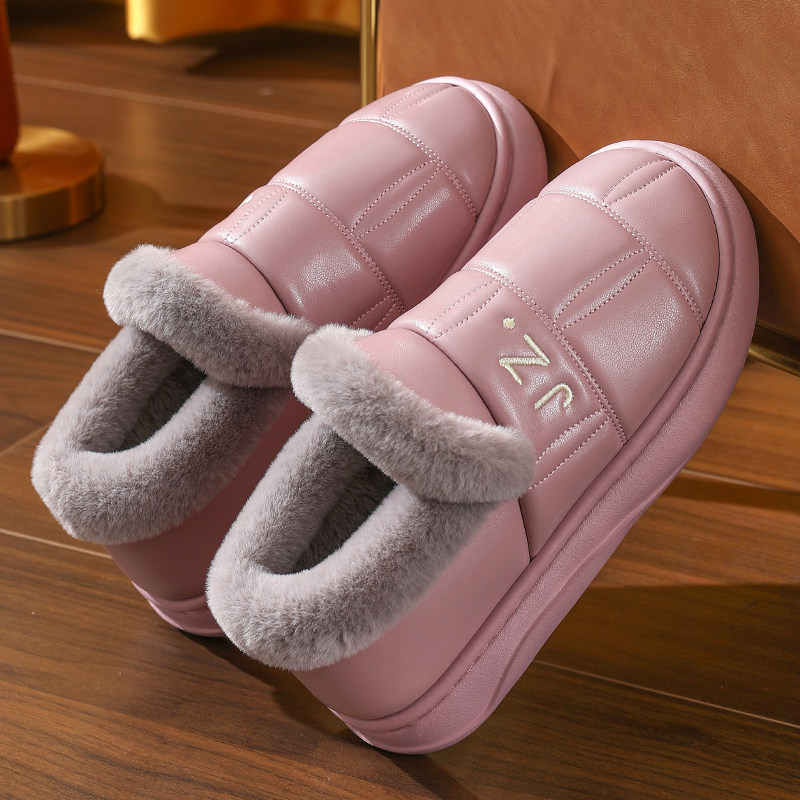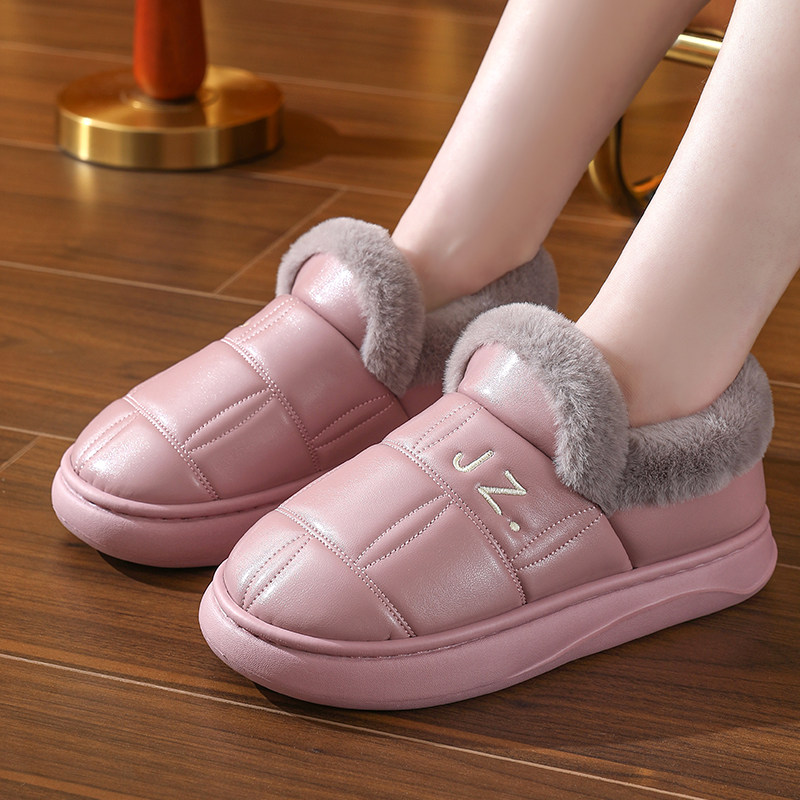 朴西棉拖鞋女士秋冬季厚底简约保暖室内居家用软底防滑情侣棉拖男