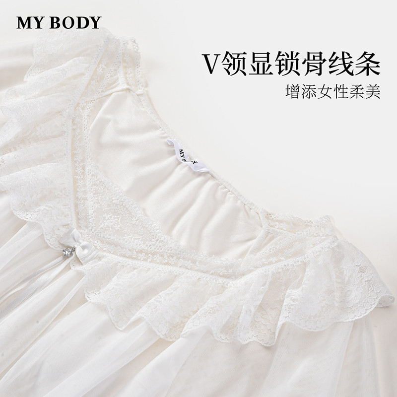 商场同款MYBODY2026春季新款睡衣女纯欲法式蕾丝荷叶边家居服套裝