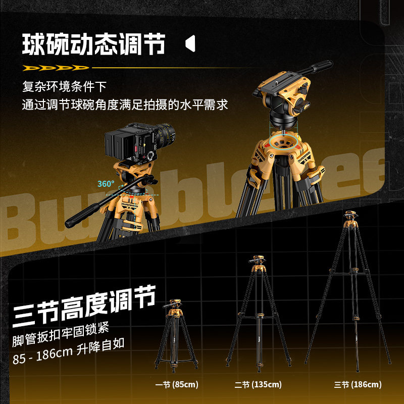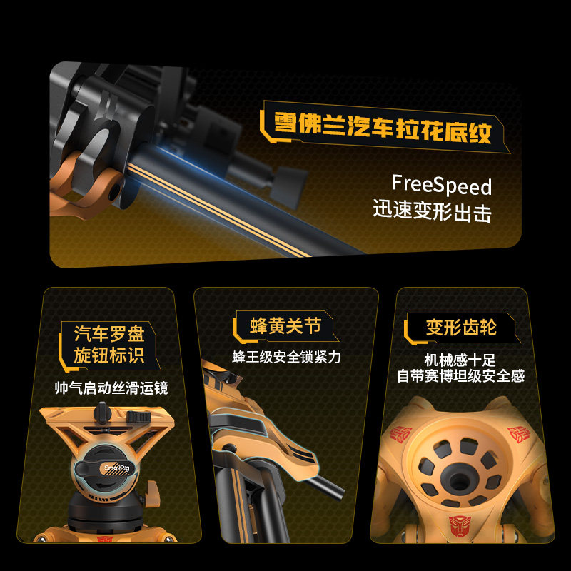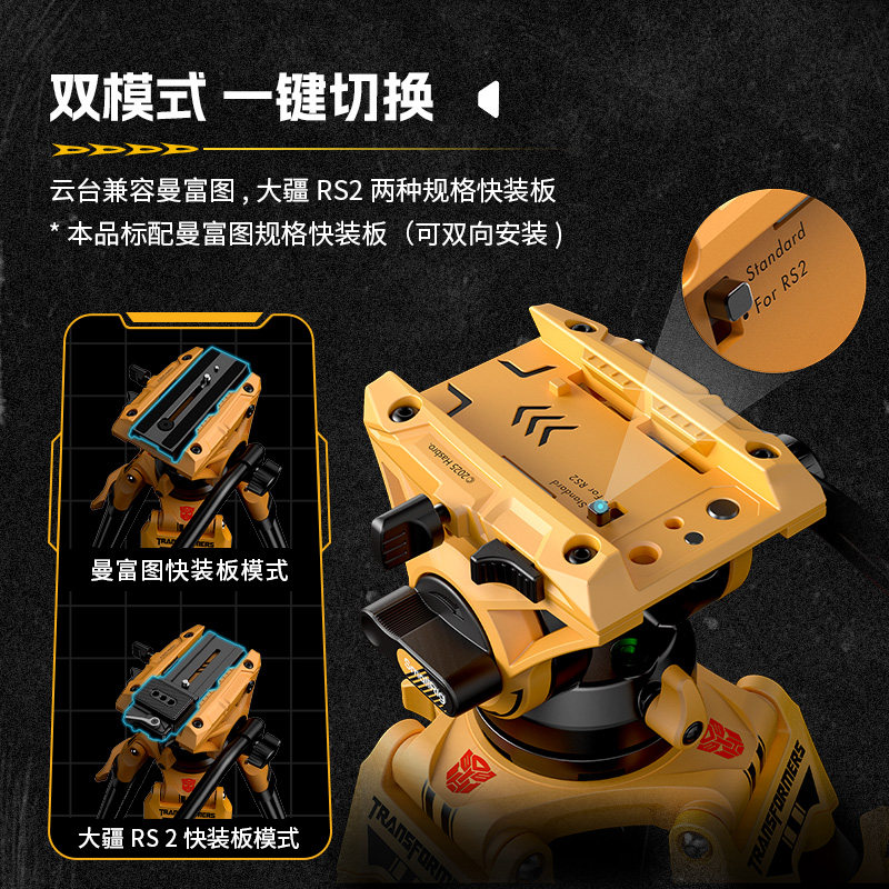 【变形金刚 x 大黄蜂系列】斯莫格三脚架专业摄影摄像机液压阻尼云台三角架长焦镜头支架摇臂重型铝合金脚架