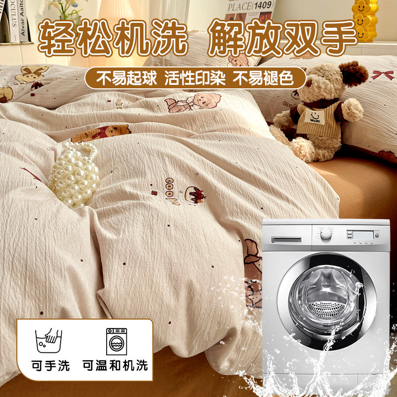 ins风水洗棉被套单件亲肤简约纯色被罩150x200非全棉纯棉冰丝床单
