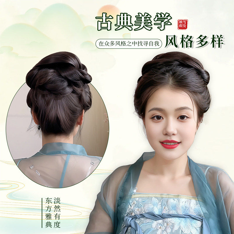 古风汉服假发髻盘发一体式发包古装明制唐风懒人造型垫发全套头饰