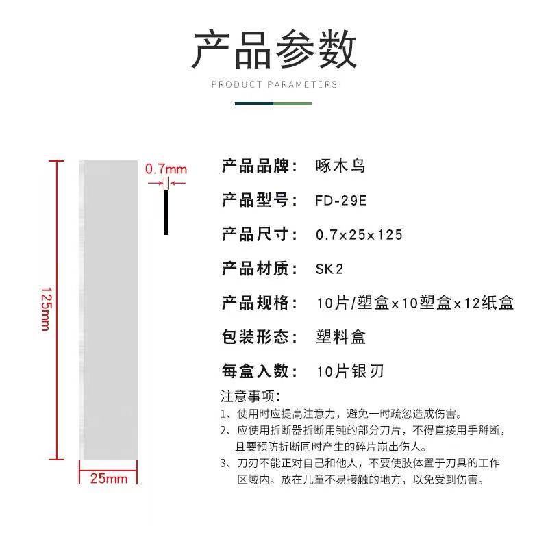 啄木鸟单刃口FD-29E刀片0.7mm工业用加厚款 药材切片刀片专用包邮