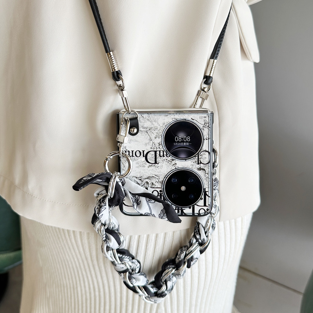 适用华为Pocket2手机壳高级斜跨p50pockets丝巾折叠屏新款保护壳手提链条新品保护套女斜挎外壳