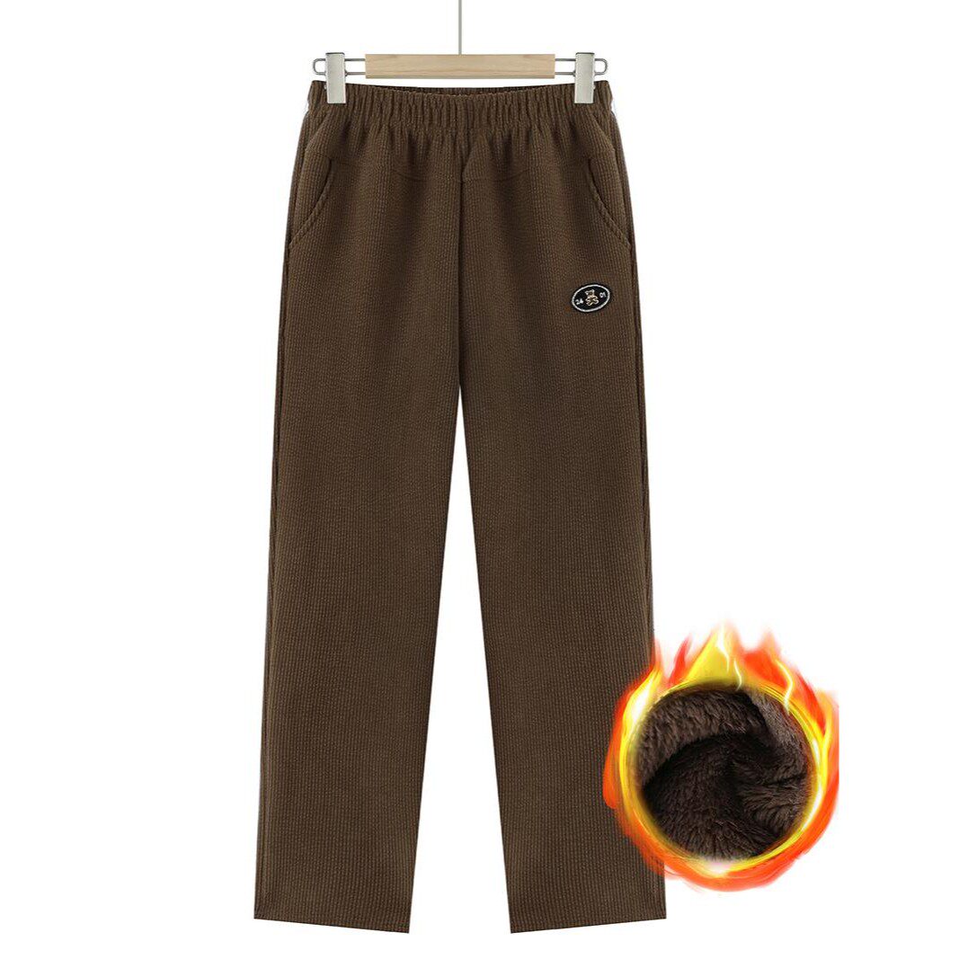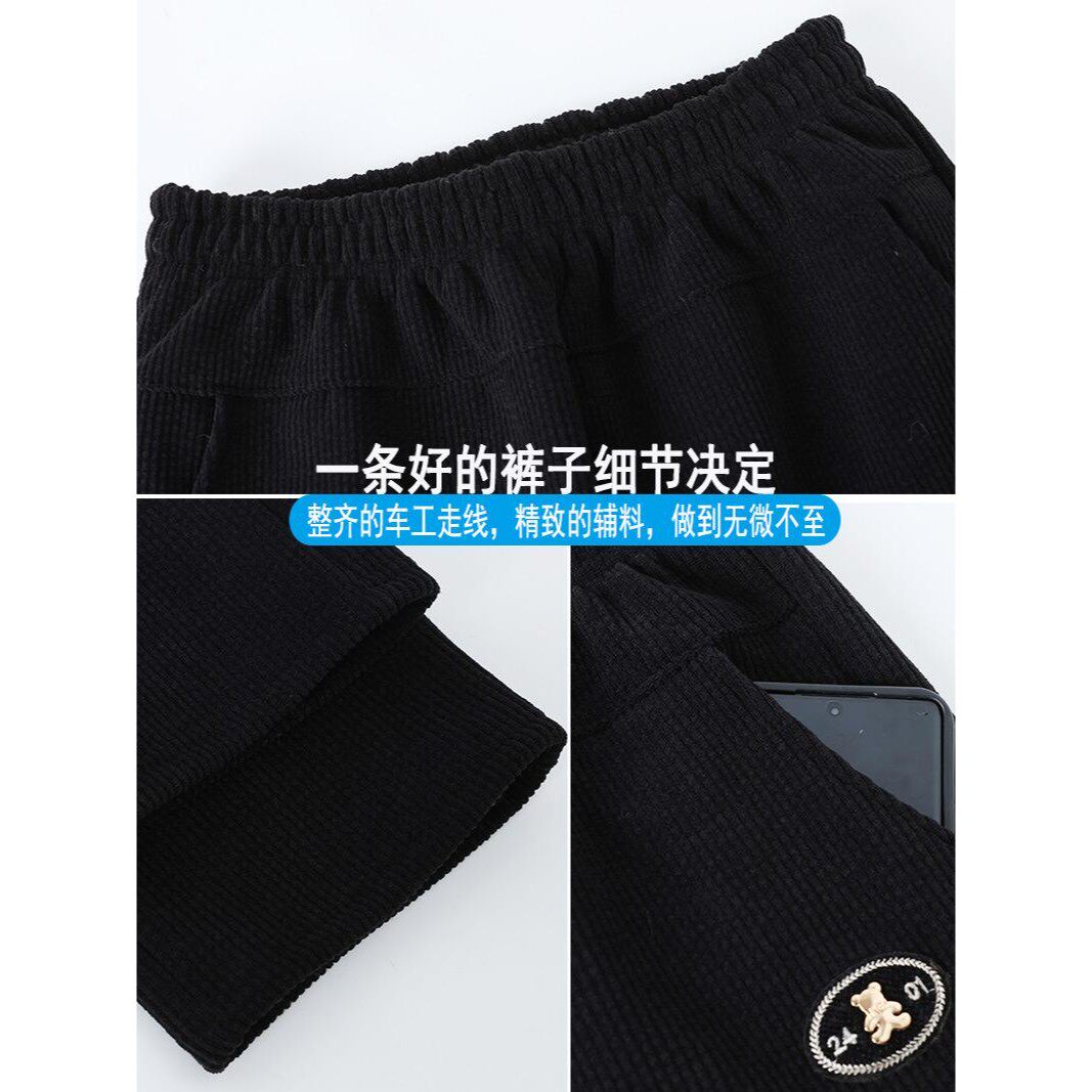 妈妈裤子秋冬款灯芯绒直筒裤女中老年人宽松奶奶加绒加厚保暖棉裤